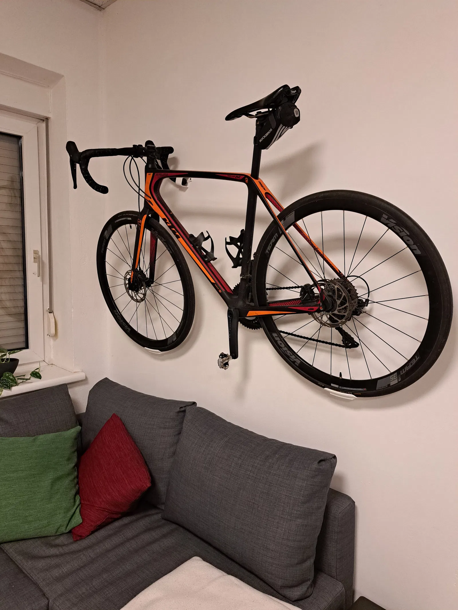 Giá treo tường thiết kế tinh gọn gồm 3 mảnh cho xe đạp Road Bike. Giúp bạn trưng bày chiếc xe ngay trong phòng khách một cách cực kỳ nghệ thuật và tiết kiệm diện tích. Dễ dàng in bằng PLA với thiết lập 0.3mm layer height và 25% infill.