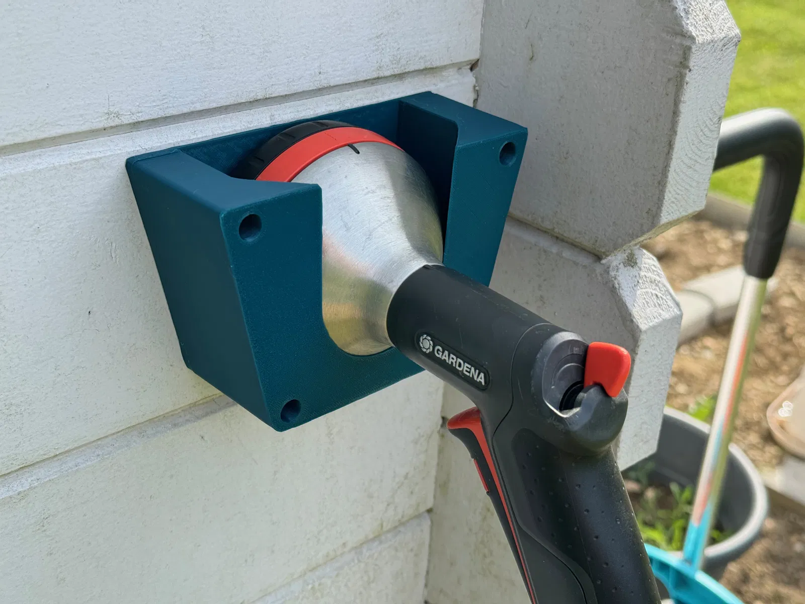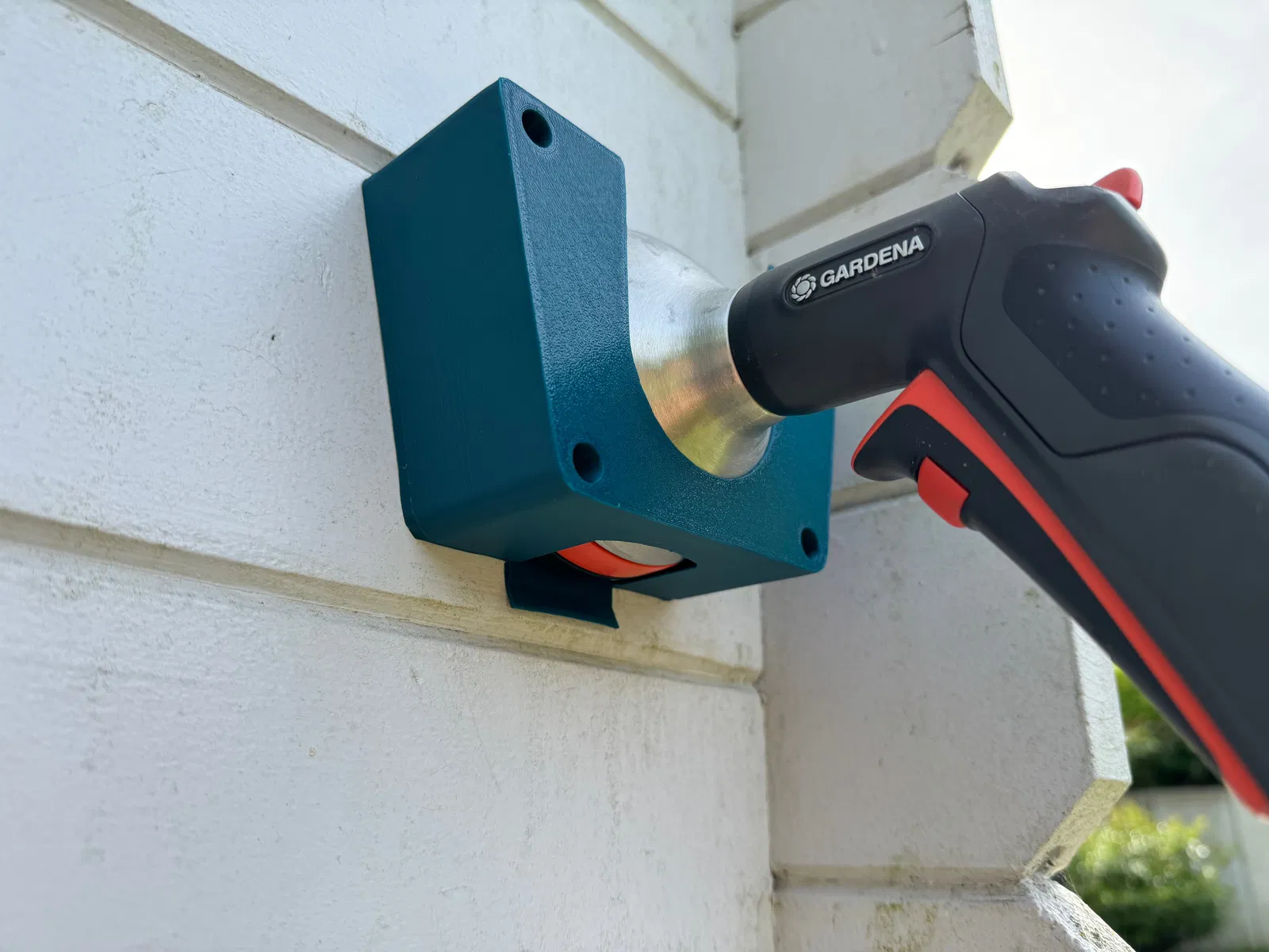 Đây là mẫu giá treo tường hai mảnh dễ in dành cho vòi tưới cây Gardena premium (No. 18317-20) hoặc vòi tưới cây Gardena comfort (No. 18315-20).