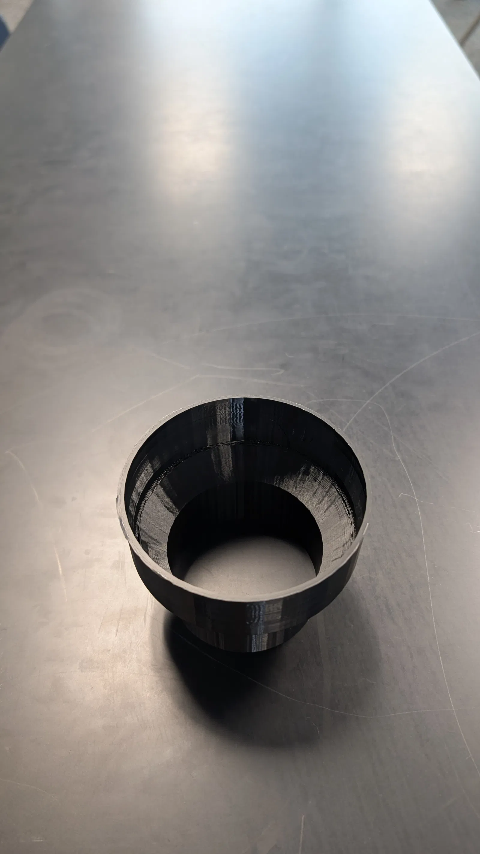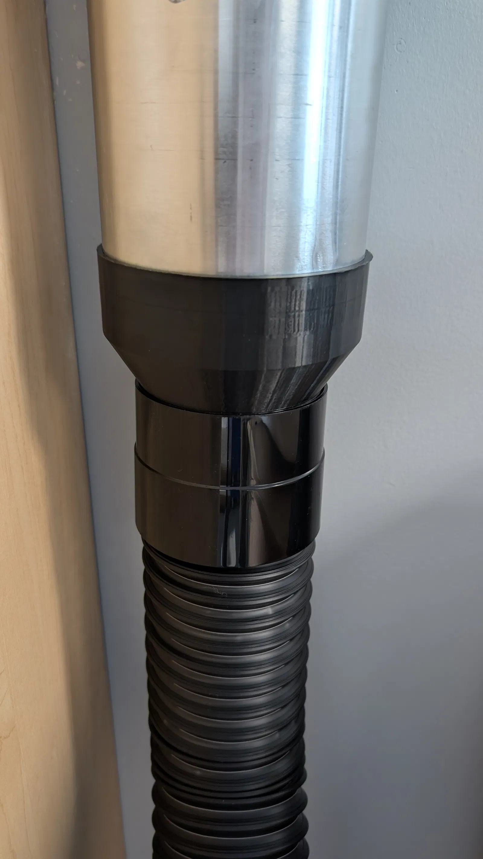 Mình cần một đầu chuyển ống xả (vent adapter) cho đường ống nối từ máy P2s/Ap2 ra ống thoát khí 4 inch dẫn ra ngoài trời. Vì tìm không thấy món nào ưng ý nên mình đã tự thiết kế cái này. Nó hoạt động khá ổn cho nhu cầu của mình. Đầu nối rất khít, tuy nhiên mình vẫn dùng thêm băng dính để tạo độ kín hơi tốt hơn.