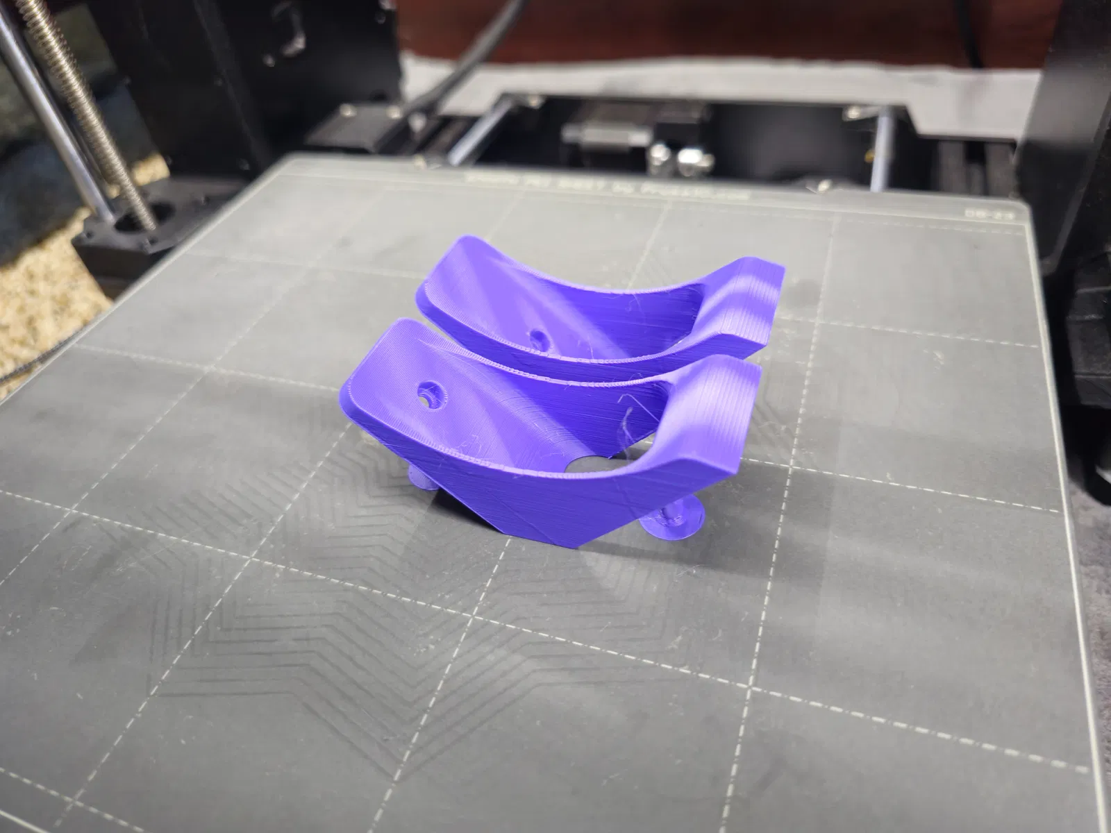 Trong ảnh là bản in bằng nhựa Sunlu Matte Purple PLA, do nhiệt độ in hơi cao nên nhìn hơi bị tơ (wisping). Mình in thông số 4/4/4 cho lớp tường/đỉnh/đáy, kết quả là độ bền cực kỳ chắc chắn, vượt xa nhu cầu sử dụng thực tế.