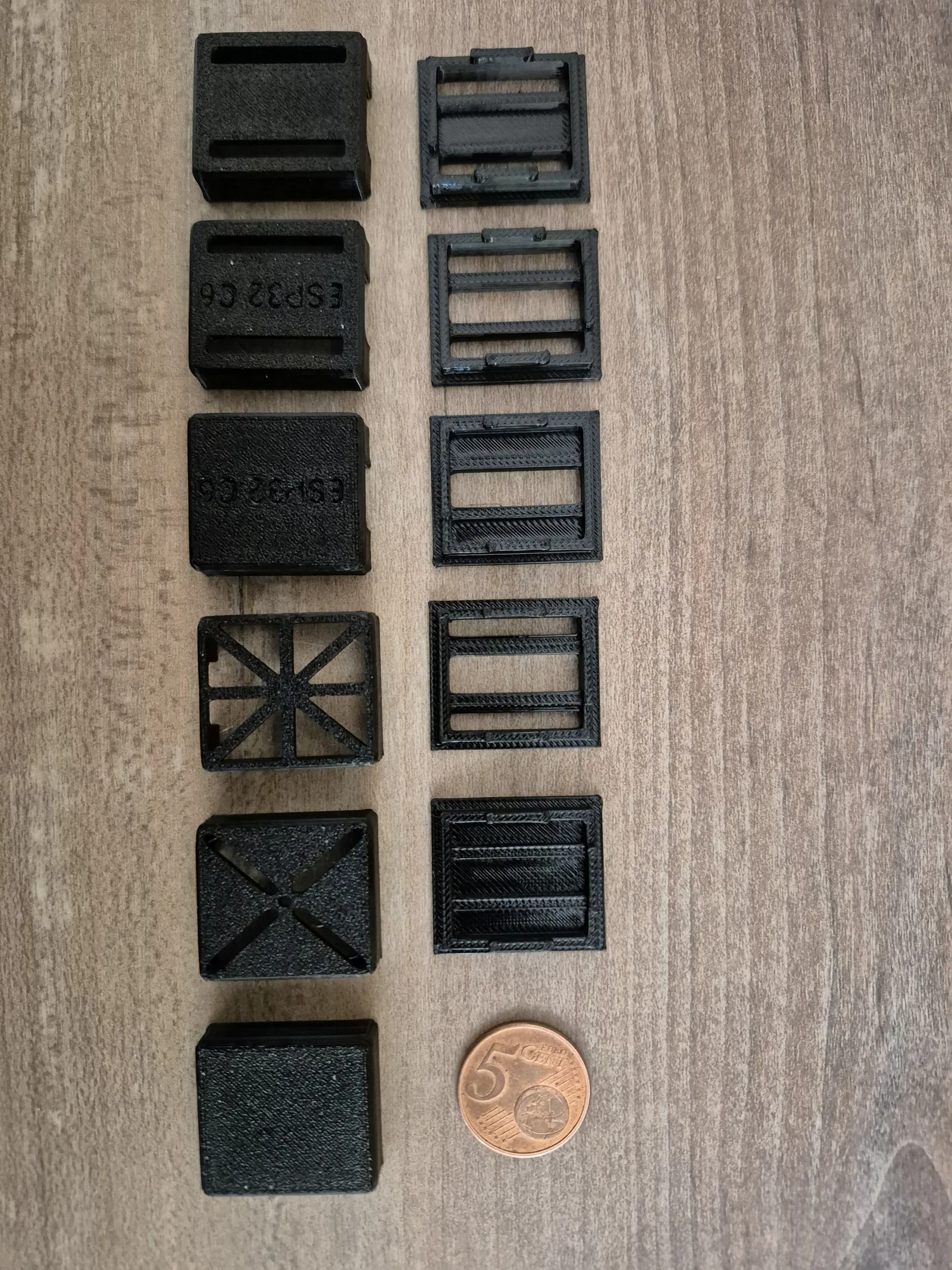 Bộ vỏ bảo vệ cho các dòng bo mạch ESP32 Mini (C6, C3, S3) với thiết kế linh hoạt, nhiều loại nắp và đế. Không cần ốc vít, dễ dàng lắp ráp. Hỗ trợ tùy chỉnh kích thước qua Onshape dành cho người dùng muốn thay đổi theo nhu cầu cá nhân.