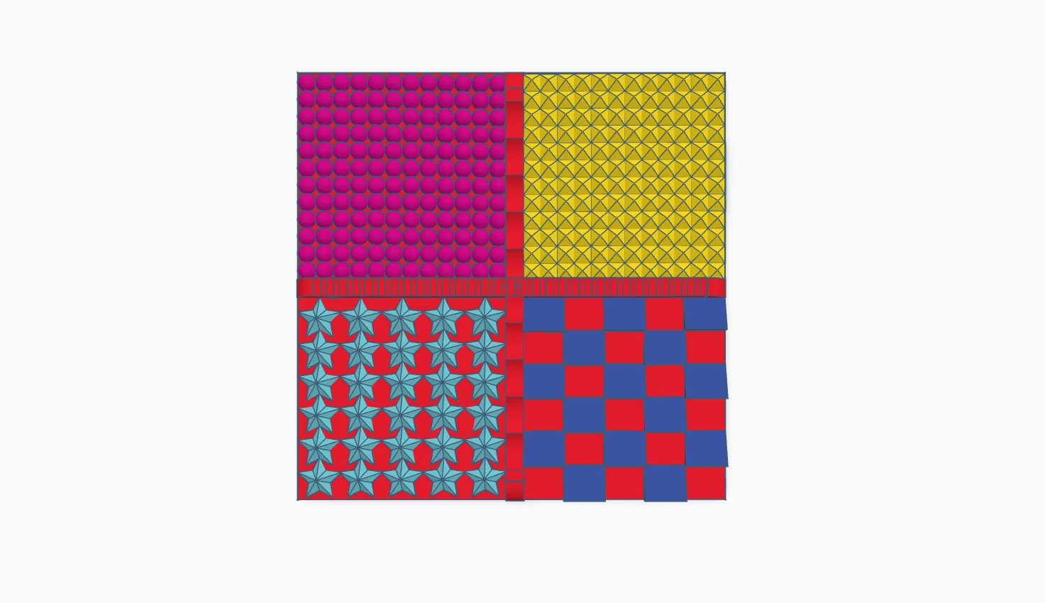 Bạn đang tìm kiếm một món đồ chơi nhỏ gọn, thú vị để giúp giải tỏa căng thẳng hay đơn giản là để kích thích giác quan? Đây chính là mẫu thiết kế "Texture pad" hoàn hảo dành cho bạn. Với kích thước vuông vắn và được chia thành nhiều khu vực nhỏ, món đồ chơi 3D này mang đến những trải nghiệm xúc giác vô cùng đa dạng. Bạn có thể dùng nó như một vật dụng để nghịch trên bàn làm việc, giúp giữ đôi tay bận rộn trong những lúc cần tập trung hoặc đơn giản là để thư giãn sau những giờ làm việc mệt mỏi.
