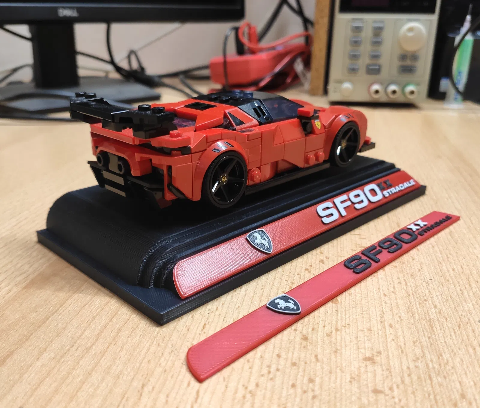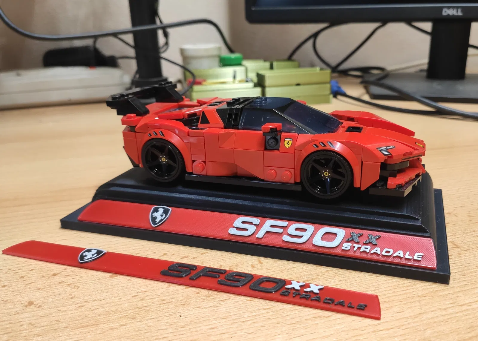 Bộ chân đế và bảng tên tùy chỉnh dành riêng cho mô hình LEGO Speed Champions Ferrari SF90 XX Stradale. Dễ dàng in nhiều màu sắc mà không cần thiết bị MMU/AMS phức tạp, giúp góc trưng bày của bạn trông chuyên nghiệp và bắt mắt hơn.