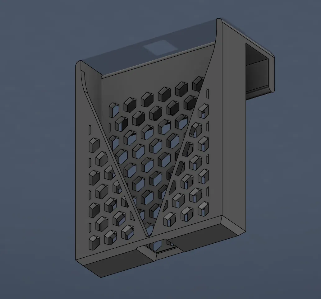 Mình thiết kế phần kẹp theo dạng chữ V mở để dễ dàng thao tác vuốt tắt báo thức trên màn hình cảm ứng, đồng thời làm giá đỡ ngắn lại để không che khuất màn hình AOD khi xem đồng hồ. Ở dưới đáy, mình có khoét thêm một lỗ để luồn cáp sạc vào rất tiện lợi.