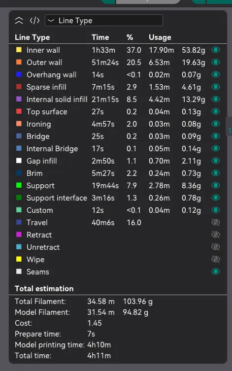 Mình in bằng chất liệu PLA với 4 lớp tường và 25% Adaptive Cubic Infill trên máy Centauri Carbon.