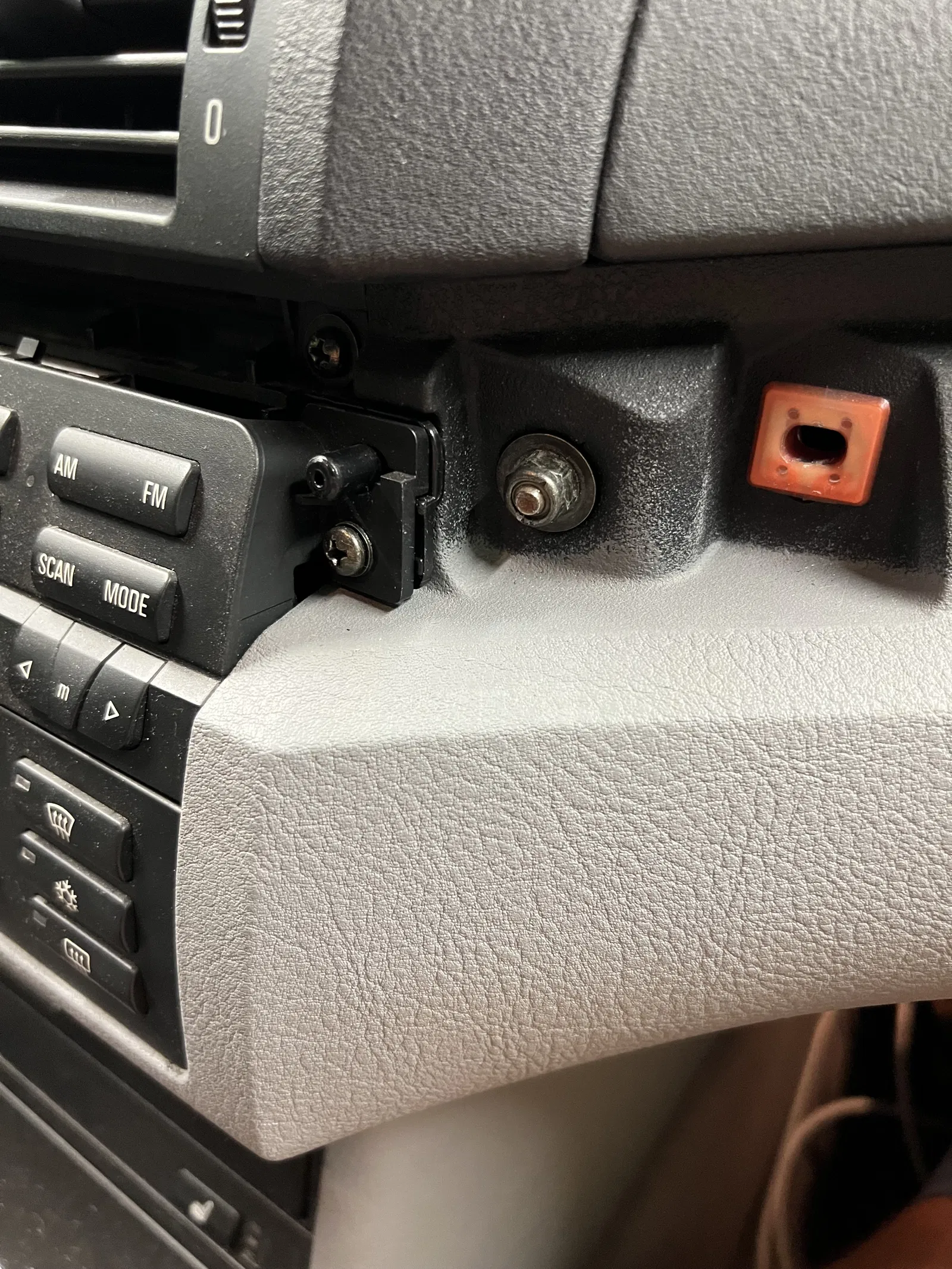 Phần kẹp này được bắt vào chốt bên cạnh đầu đĩa (các bạn có thể thấy rõ trong ảnh). Bạn sẽ sử dụng chính con ốc zin đó để siết chặt lại. Để thực hiện, cần tháo phần ốp trang trí bên ghế phụ và bảng điều khiển trung tâm. Lưu ý làm thật cẩn thận để tránh gãy các chốt cài bên trong nhé.