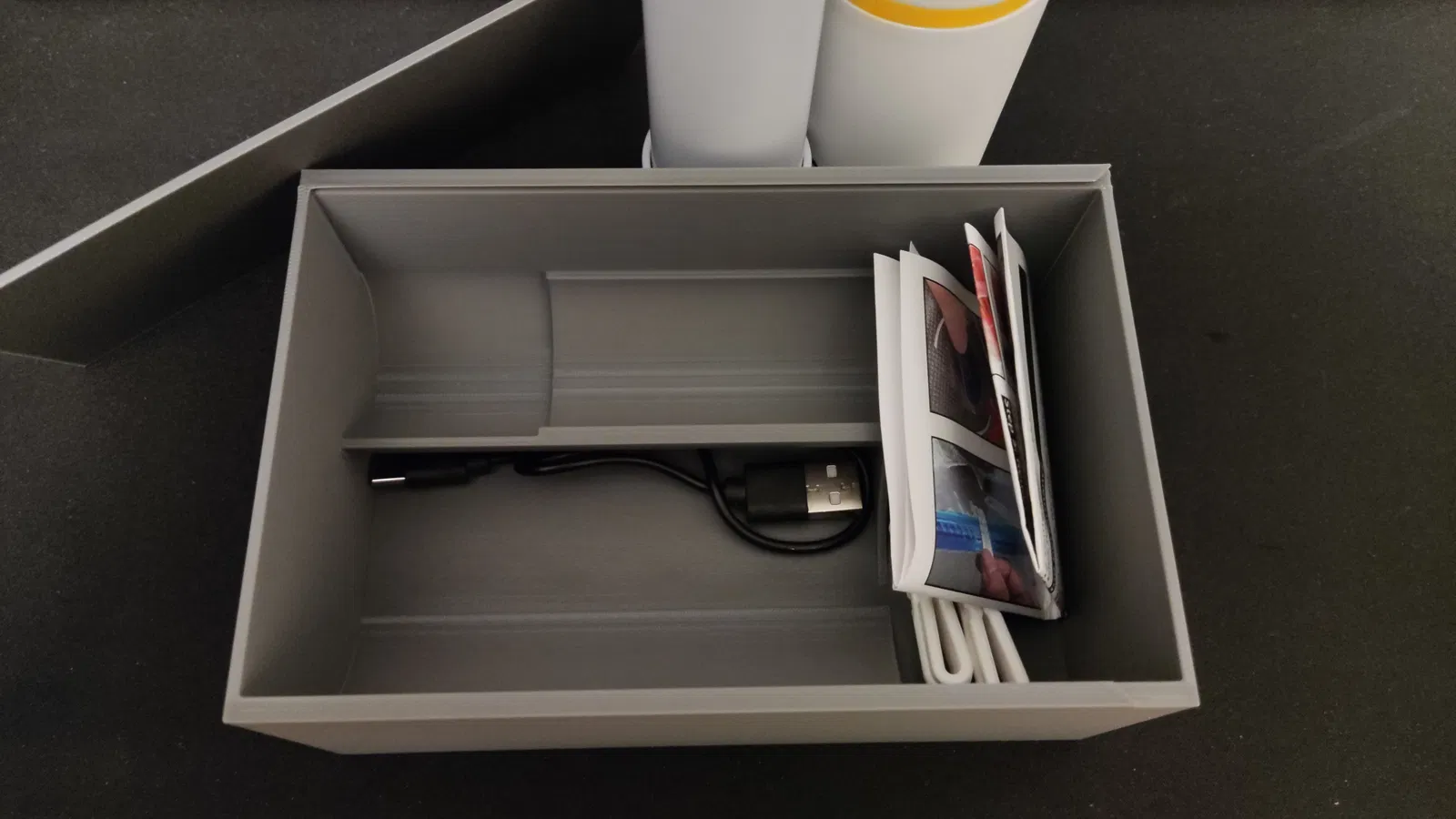 Bạn đang sở hữu bộ máy hút chân không cầm tay nhưng lại đau đầu vì các phụ kiện như bơm tay, cáp sạc, tài liệu hướng dẫn cứ để lung tung? Chiếc hộp in 3D này chính là giải pháp hoàn hảo giúp bạn quản lý gọn gàng tất cả các linh kiện chỉ trong một không gian duy nhất. Với thiết kế tối giản nhưng cực kỳ khoa học, hộp có các ngăn chuyên dụng để giữ máy hút điện, bơm tay và các phụ kiện nhỏ khác nằm cố định, tránh tình trạng thất lạc hoặc hư hỏng do va đập.