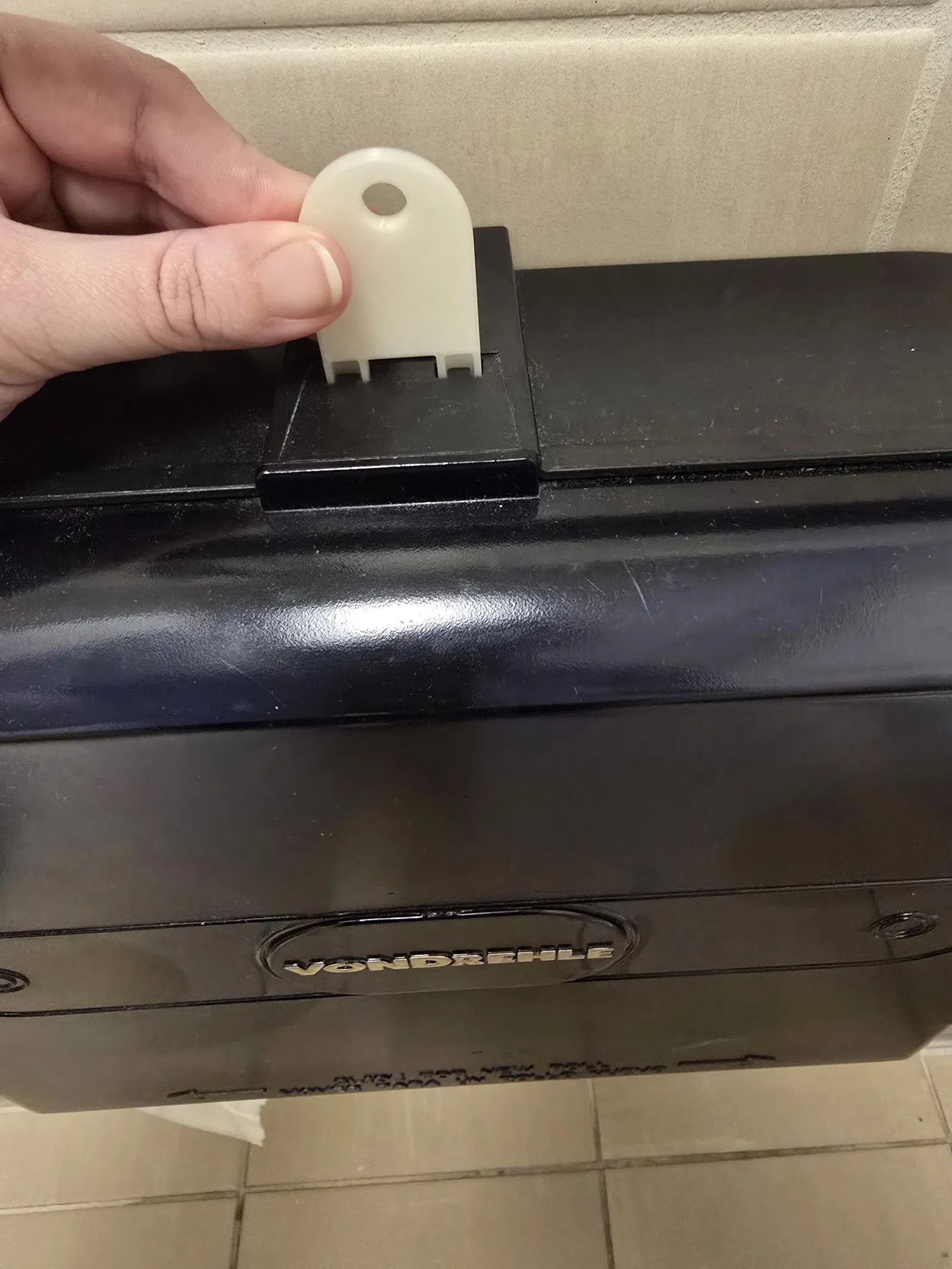 Chìa khóa cho các loại hộp đựng giấy vệ sinh loại lớn gắn tường có sức chứa hai cuộn. Sản phẩm này vừa với các loại hộp đựng giấy có lỗ khóa hình || || nằm phía trên. Tôi đã in bằng nhựa PLA với thông số 2 perimeter (thành ngoài), 15% infill, độ phân giải lớp in .2 Structural và đầu phun .4 trên máy Prusa Core One, kết quả là chìa khóa rất chắc chắn. Nhân viên vệ sinh ở trường đại học của tôi rất vui mừng khi có thêm chìa khóa dự phòng để giữ trong các kho chứa đồ!