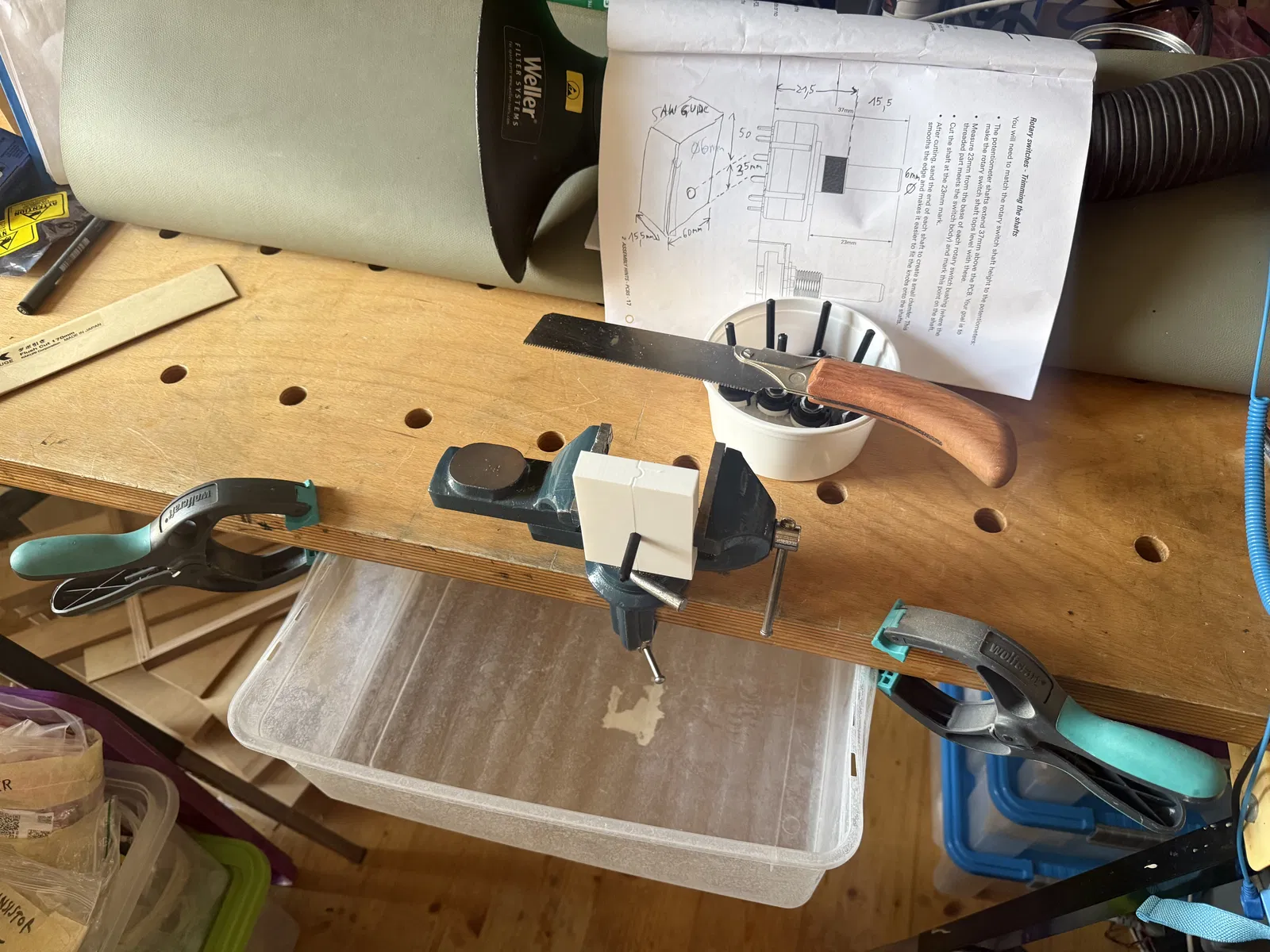 Đây là một đồ gá nhỏ giúp bạn kẹp và cưa phẳng các trục nhựa 6mm của Rotary Switch (như dòng Lorlin CK) một cách chính xác. Thiết kế tối ưu cho cưa kiểu Nhật, giúp việc cắt bỏ phần trục thừa trở nên dễ dàng và chuyên nghiệp hơn.