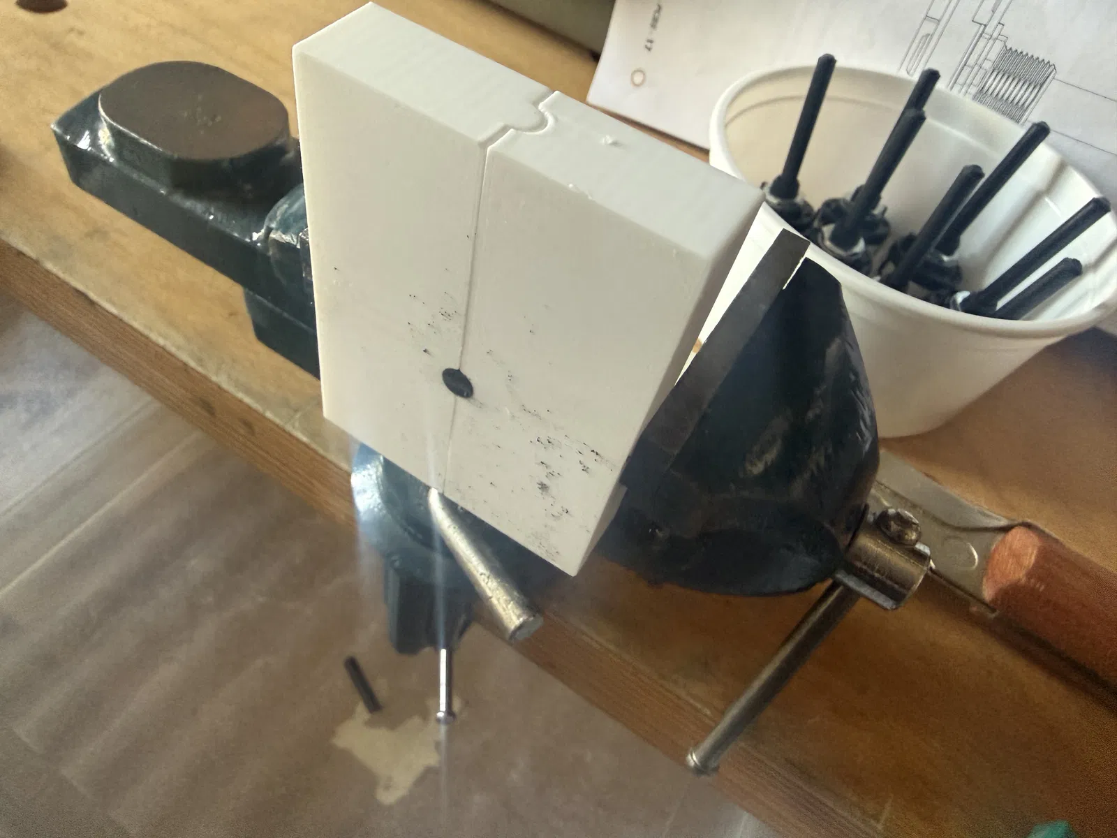 Giữ công tắc chắc chắn khi kẹp vào ê-tô (đã test thành công với nhựa PCTG).