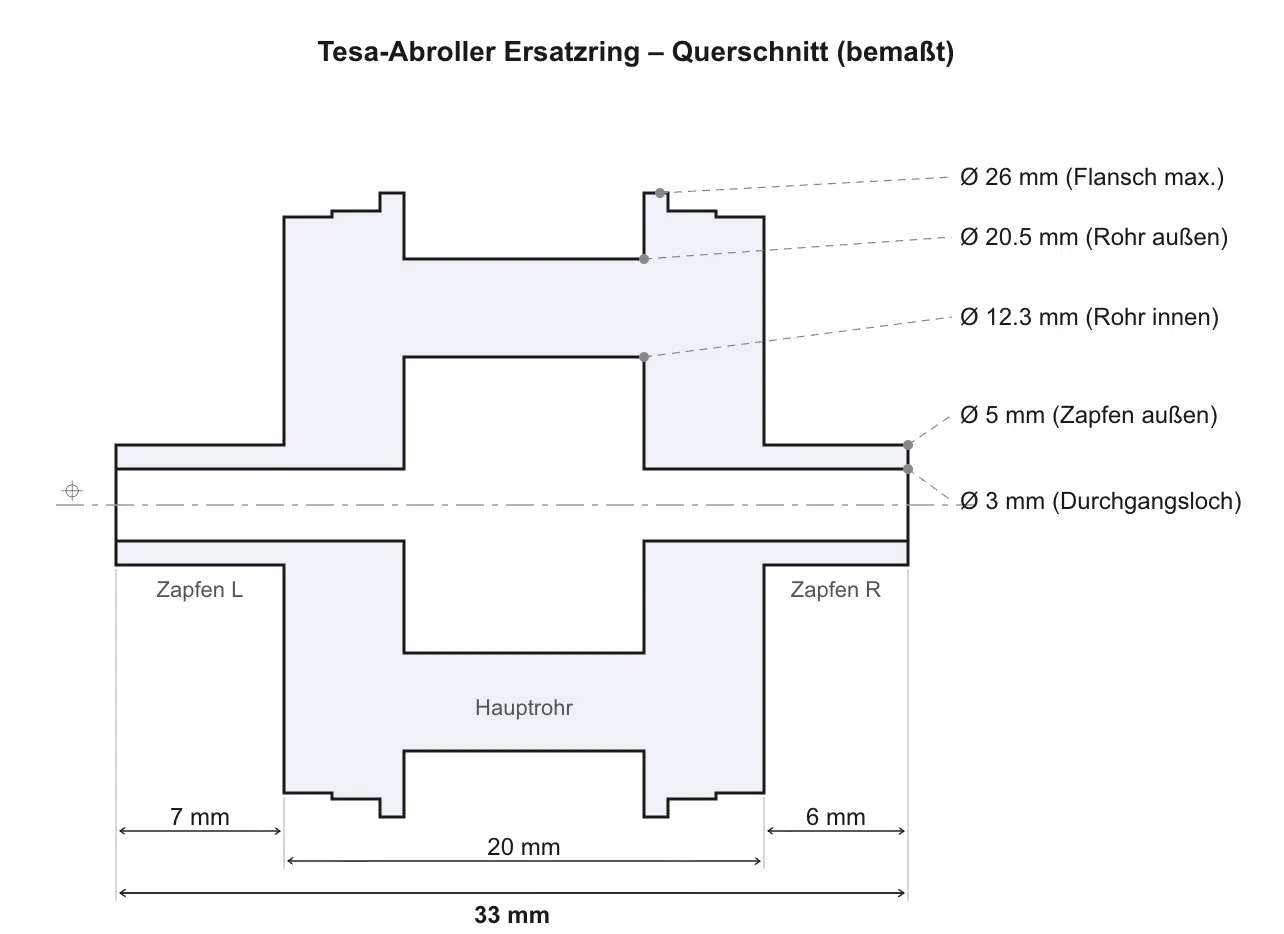 Bạn đang sở hữu một chiếc dụng cụ cắt băng keo (hộp cắt keo) của thương hiệu Tesafilm nhưng chẳng may phần trục lăn bên trong bị hỏng hoặc thất lạc? Đừng vội vứt bỏ cả bộ dụng cụ đó đi nhé, giải pháp in 3D sẽ giúp bạn phục hồi nó ngay lập tức. Đây là linh kiện trục lăn thay thế được thiết kế chính xác để thay thế cho bộ phận giữ cuộn băng keo, giúp bạn tiếp tục sử dụng dụng cụ của mình một cách trơn tru và bền bỉ hơn bao giờ hết.