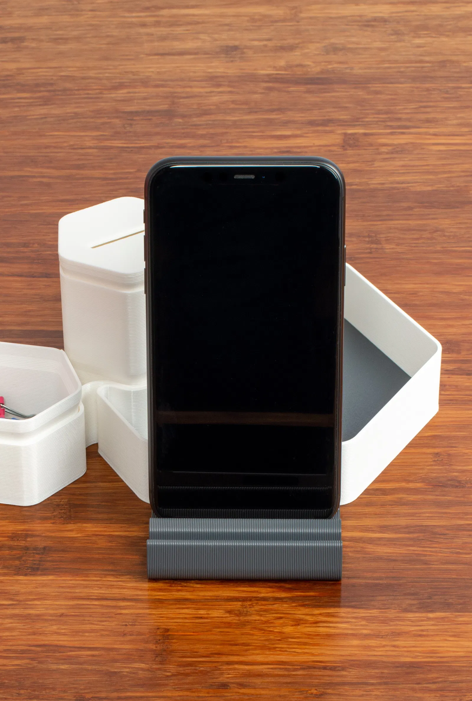 Sự kết hợp hoàn hảo giữa phong cách và công năng với khay đựng đồ để bàn Hexo Pod. Thiết kế này giúp không gian làm việc của bạn gọn gàng, ngăn nắp hơn, từ đó giảm bớt sự khó chịu và tăng cường năng suất làm việc! Tất cả các bộ phận đều có thể lắp ghép với nhau, cho phép bạn tùy chỉnh kích thước và cấu hình sao cho phù hợp nhất với nhu cầu sử dụng của mình. Các chân đế điện thoại cần được gắn vào một "hexo pod large" để đảm bảo độ chắc chắn.