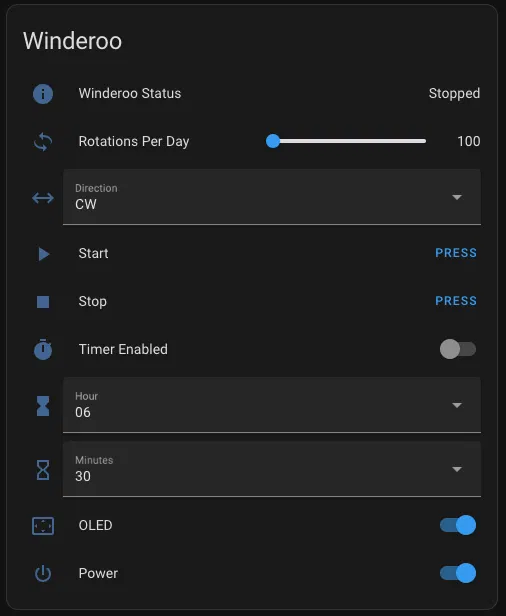 - Điều khiển qua giao diện web (mDNS - winderoo.local) hoặc qua Home Assistant (cần MQTT).