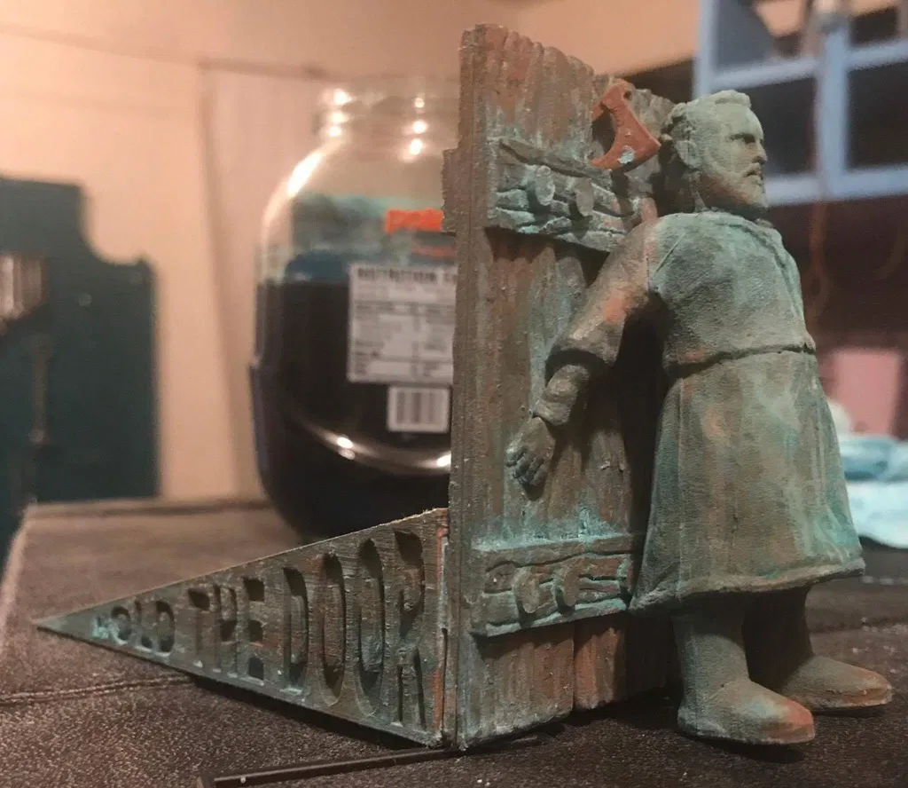 - Phần chêm (wedge): Có khắc tên Hodor và dòng chữ 'Hold the Door' ở cạnh bên.
