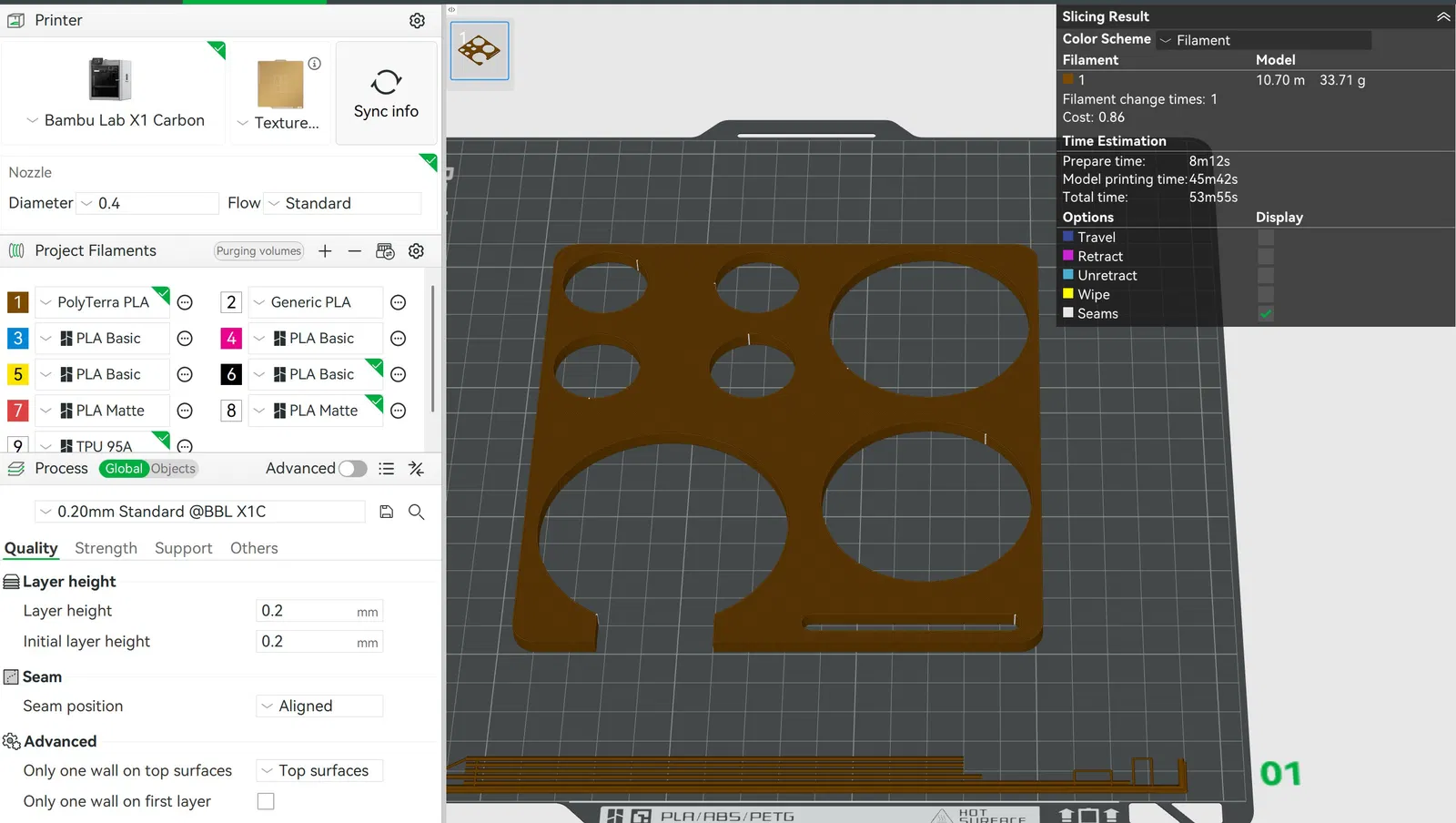 Ảnh thành phẩm đính kèm được in bằng cài đặt tiêu chuẩn với nhựa PolyTerra PLA (màu nâu) trên máy Bambu X1C.