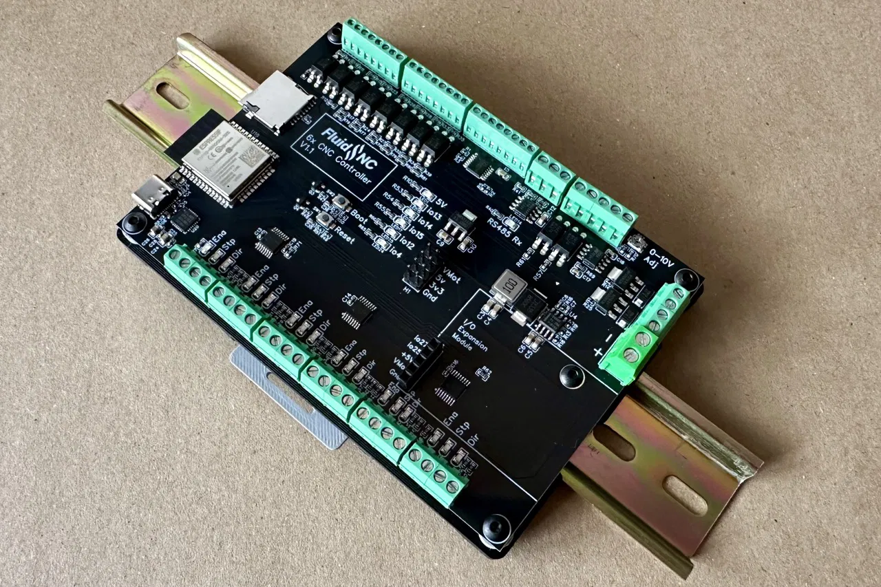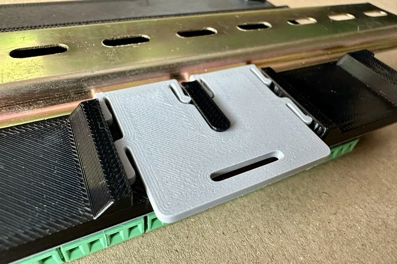 Cố định bộ điều khiển CNC của bạn lên thanh ray DIN dễ dàng với mẫu ngàm có chốt cài chắc chắn này. Thiết kế đi kèm tấm đế cứng cáp và tùy chọn đệm nâng, hỗ trợ lắp đặt linh hoạt cho bảng mạch FluidNC của bạn.