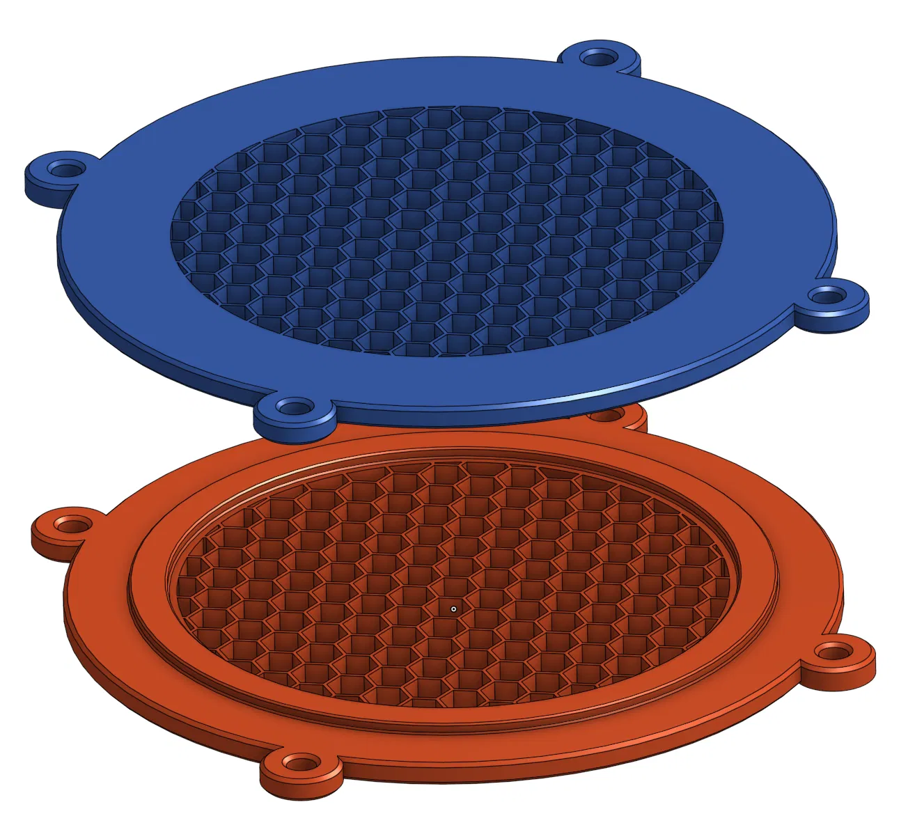 Đây là mẫu giá đỡ lọc dùng để thử nghiệm màng lọc kỵ nước, đóng vai trò như một lớp chắn chống ẩm cho các lỗ thông hơi của hộp chứa thiết bị điện tử ngoài trời. Thiết kế này hướng tới các hệ thống làm mát thụ động/đối lưu; việc gắn quạt trực tiếp vào bộ lọc có thể làm hỏng màng lọc do áp suất quá mức.