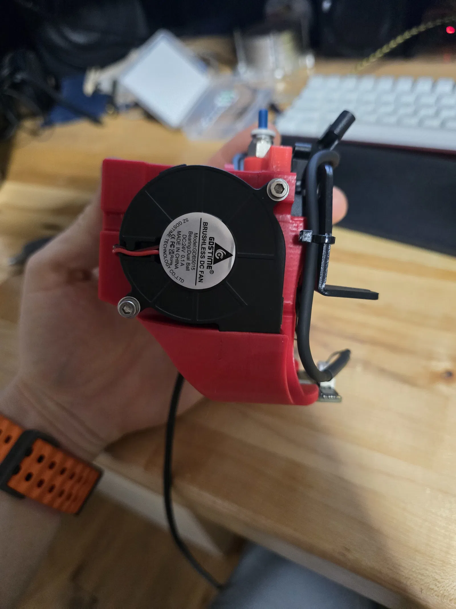 Bản mod Fan Shroud này được thiết kế lại, bổ sung thêm ngàm gắn ống Bowden, lỗ đi dây tăng lực sợi nhựa (filament tensioner), cùng với giá đỡ cho cảm biến Beacon hoặc Cartographer! Mình vẫn giữ nguyên quạt tản nhiệt phía trước vì thấy không cần thiết phải dùng quạt tản nhiệt lớn hơn cho họng nhiệt (heat break).