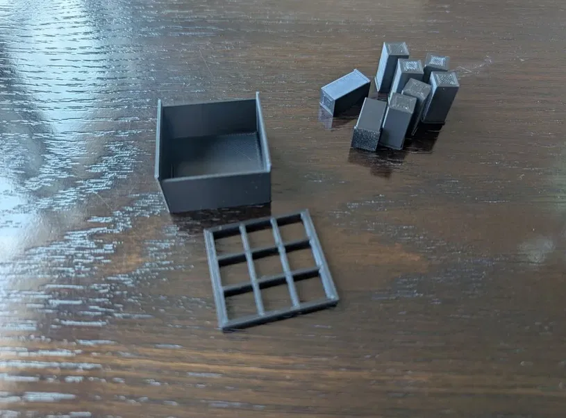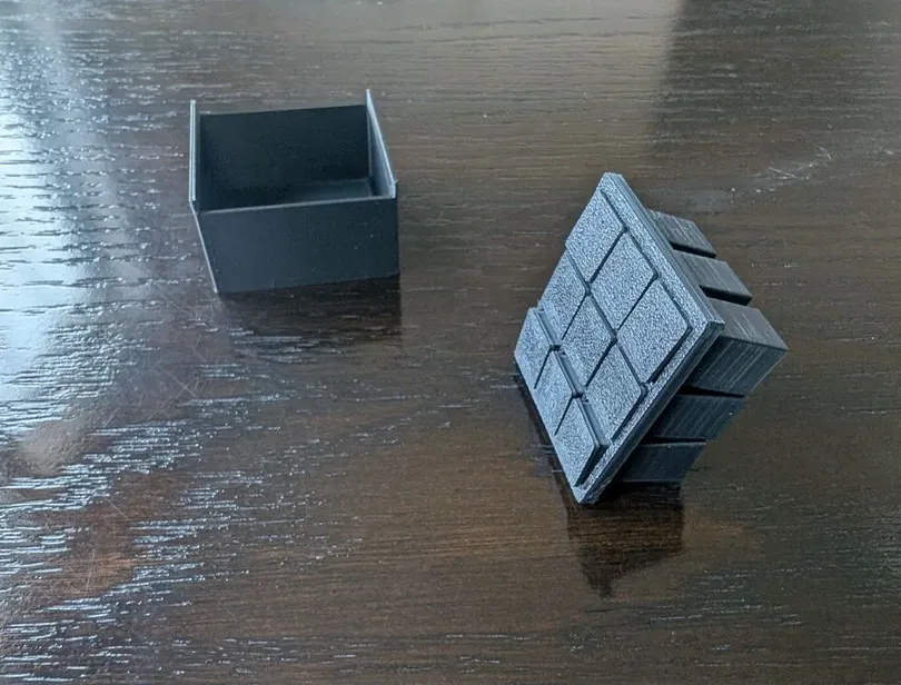 Mình vừa thiết kế chiếc đồ chơi fidget hình Ghast nhỏ nhắn này với 9 chốt di chuyển bên trong một khối lập phương. Các chốt này có thể ấn vào và di chuyển qua lại, rất thích hợp để làm đồ chơi giải trí trên bàn làm việc.