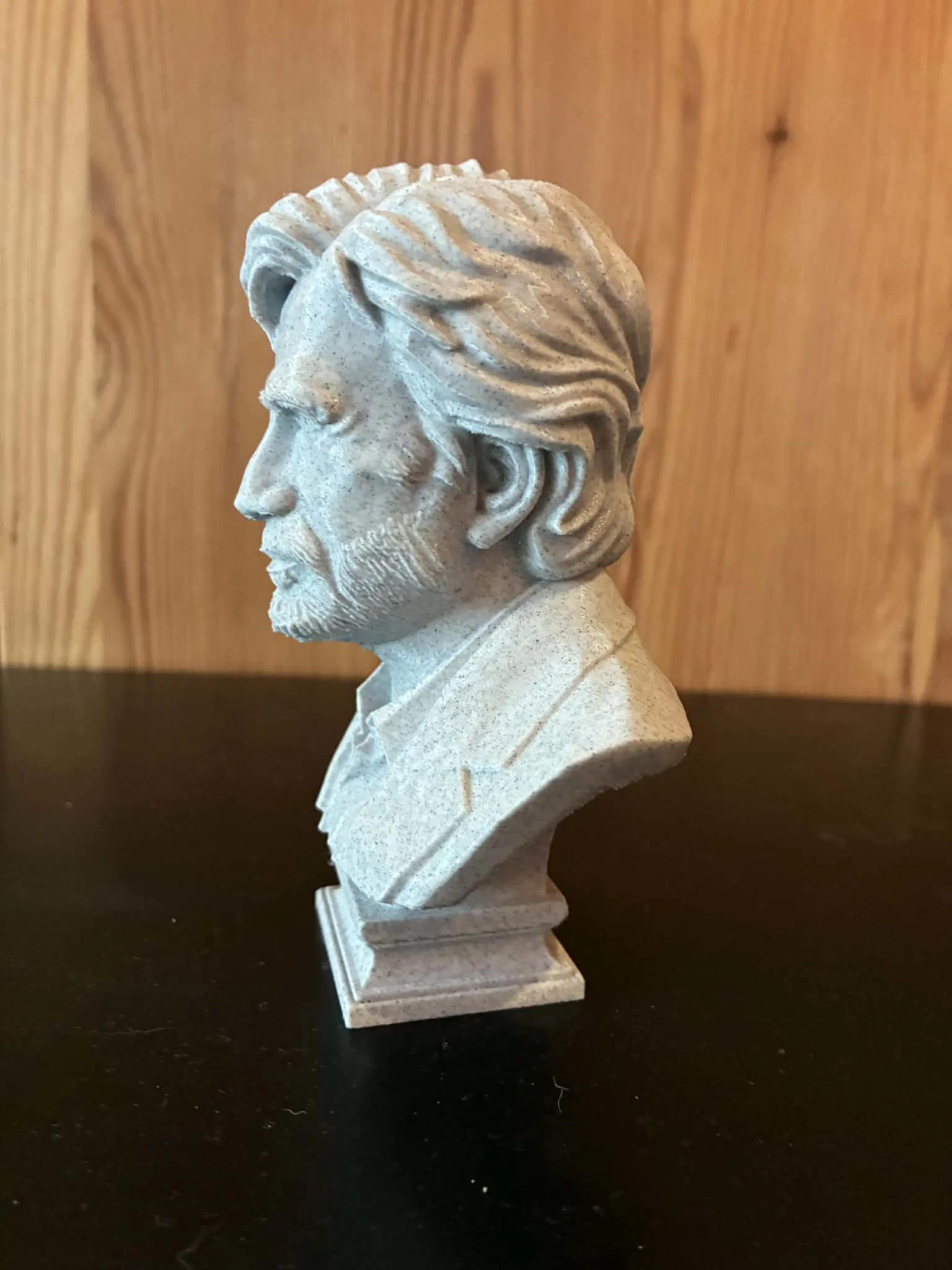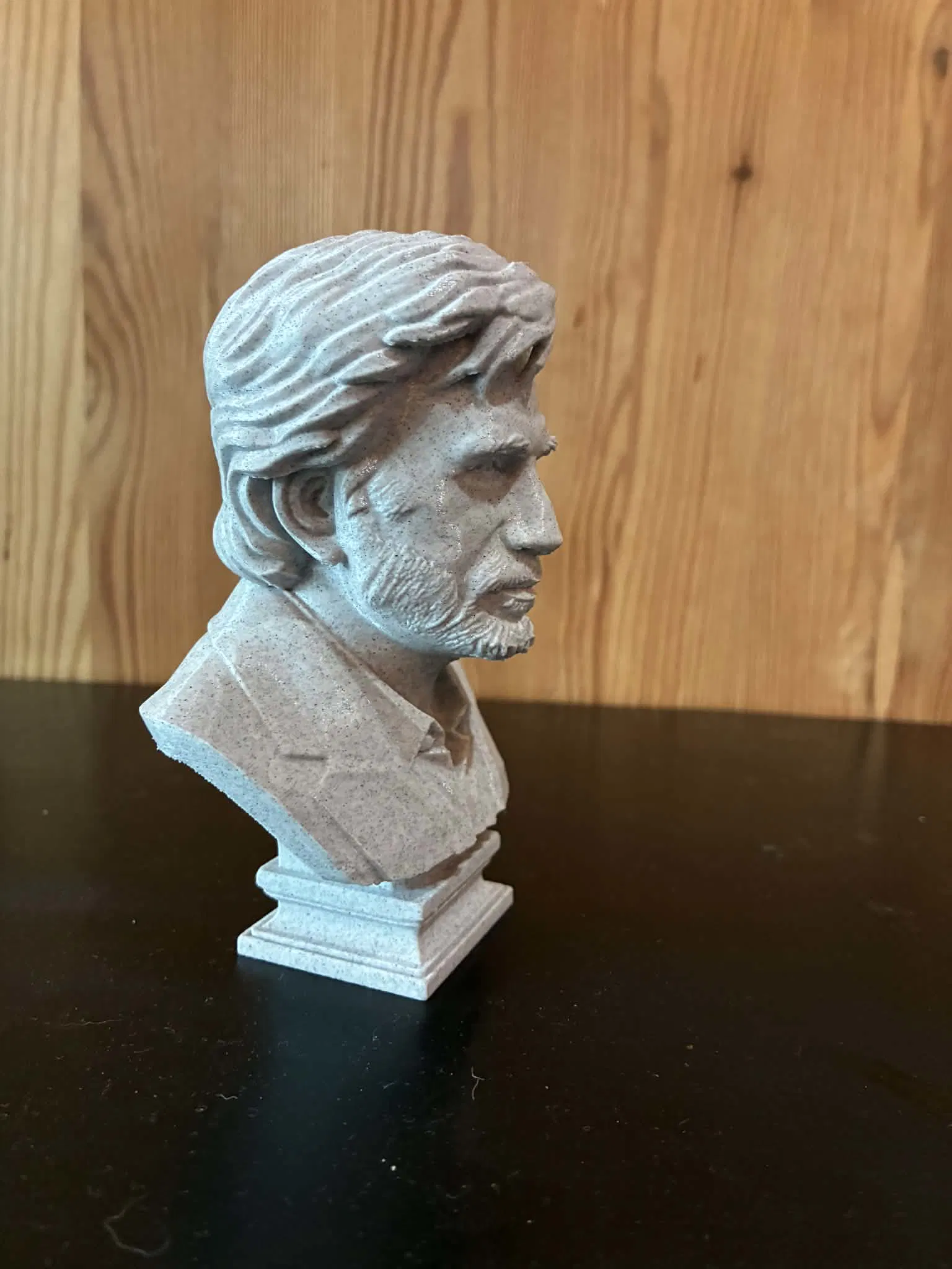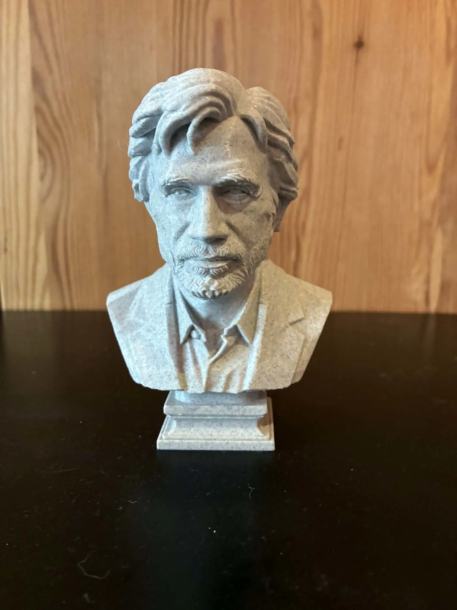 Phong cách điêu khắc tập trung vào những khối hình rõ ràng và các đường nét dứt khoát, thể hiện đúng tinh thần kiên định và mạnh mẽ của nam diễn viên. Các chi tiết đã được tối giản hóa và cấu trúc lại để phù hợp nhất cho việc in 3D mà vẫn giữ được độ sắc nét, dễ nhìn. Tượng được đặt trên một phần đế tinh tế và cân đối, đúng chuẩn phong cách điêu khắc cổ điển, giúp tôn lên biểu cảm của nhân vật.
