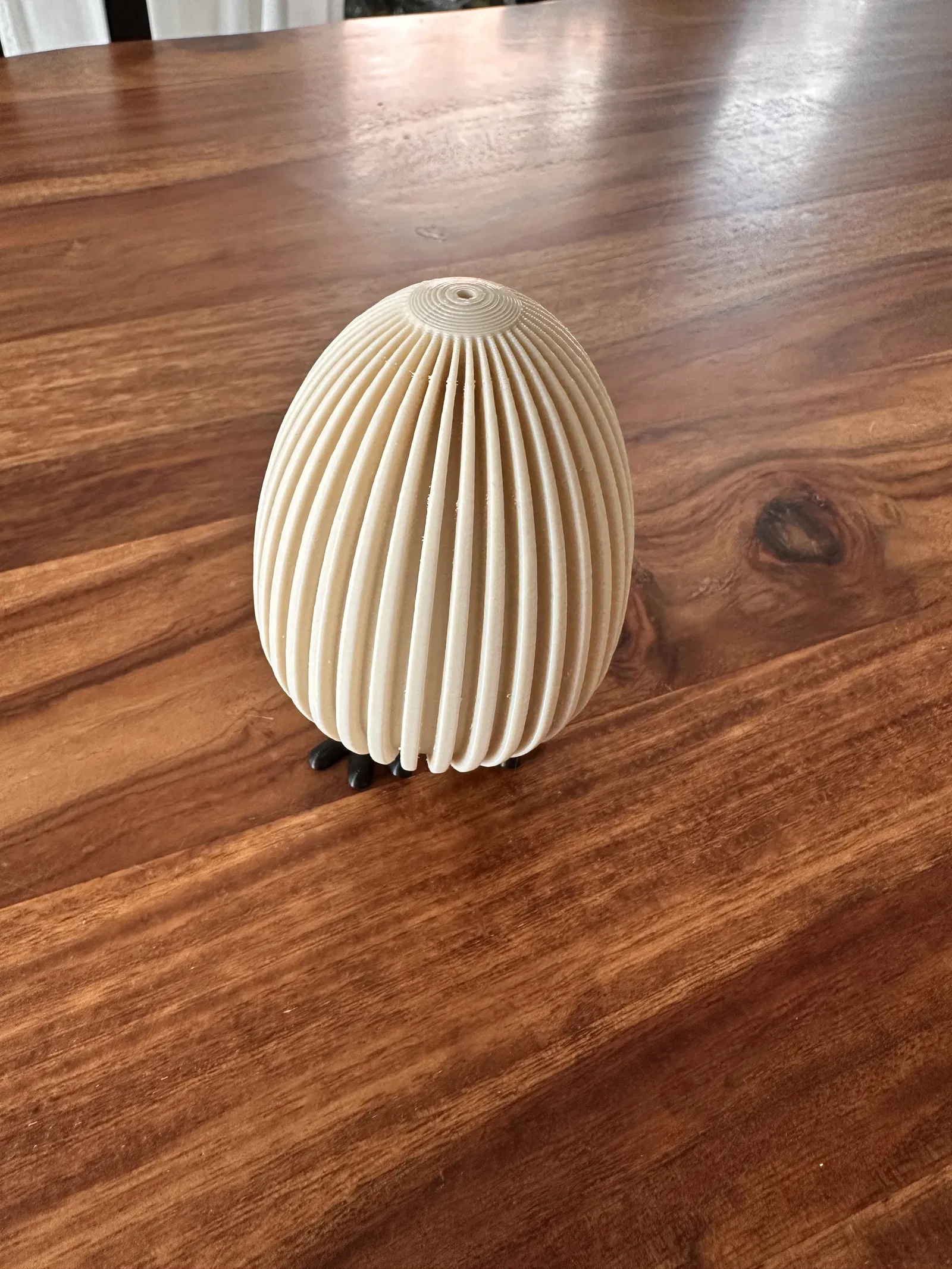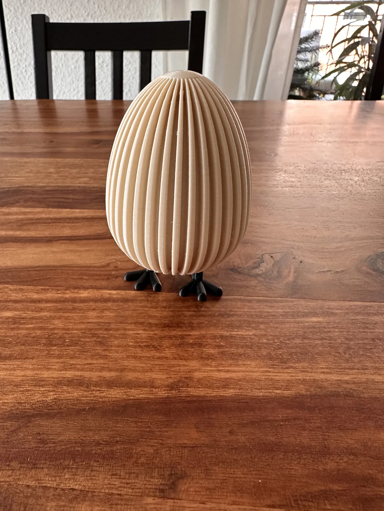 Việc in và lắp ráp mô hình này cũng vô cùng đơn giản, ngay cả đối với những bạn mới bắt đầu làm quen với in 3D. Bạn chỉ cần in riêng biệt phần thân quả trứng và hai chiếc chân gà, sau đó lắp chúng lại với nhau theo khớp nối đã được thiết kế sẵn. Sự kết hợp giữa vẻ ngoài tối giản của quả trứng với các đường gân nổi và vẻ tinh nghịch của đôi chân tạo nên một hiệu ứng thị giác rất ấn tượng, mang lại cảm giác vừa hiện đại lại vừa gần gũi.