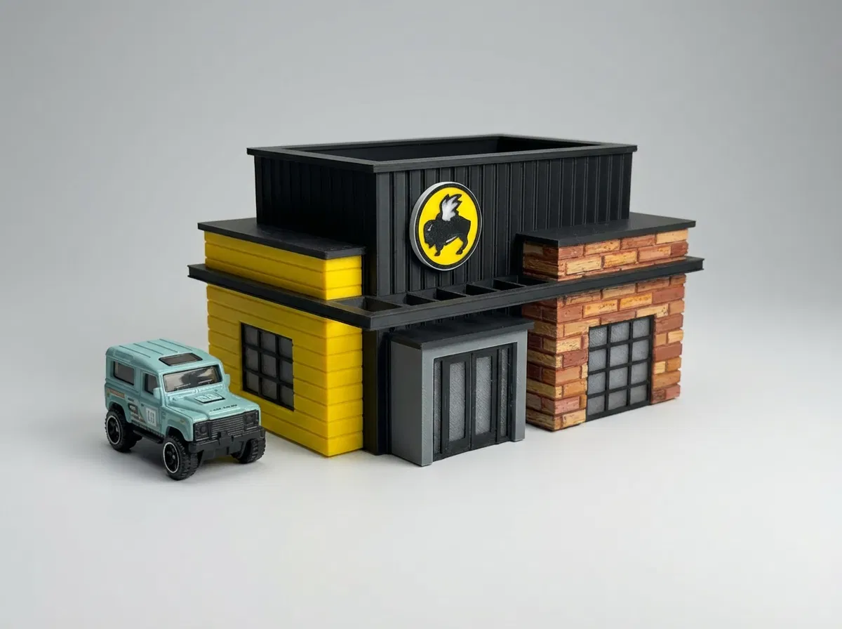 Mô hình diorama Buffalo Wild Wings tỷ lệ 1/64 cực kỳ chi tiết và dễ lắp ráp cho người chơi mô hình. Sản phẩm cần dùng keo dán và sơn thủ công để đạt độ hoàn thiện cao nhất, phù hợp cho bộ sưu tập xe Hot Wheels hoặc mô hình tỷ lệ 1/64.