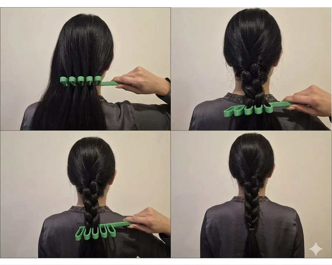 Dụng cụ hỗ trợ tết tóc được thiết kế công thái học này giúp bạn giữ và chia các phần tóc một cách chính xác, hỗ trợ đắc lực cho việc tạo kiểu tóc tết Pháp đơn giản và chuyên nghiệp ngay tại nhà.