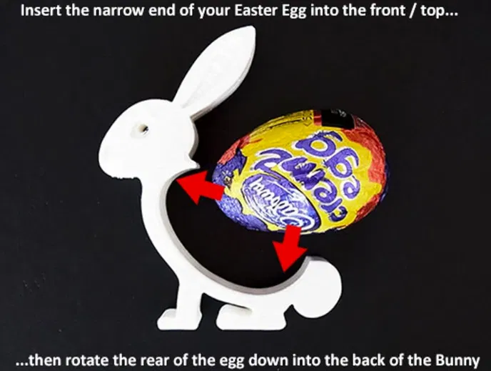 Trứng Phục sinh tuy có hình dáng chung giống nhau nhưng kích thước giữa các nhà sản xuất lại rất khác biệt. Các chú thỏ giữ trứng này có thể được tùy chỉnh kích thước (scale) để vừa vặn với gần như mọi loại trứng. Việc scale rất đơn giản... bạn chỉ cần chọn file .stl có kích thước gần với trứng của mình nhất. Hai file đã được cung cấp sẵn với cùng chiều rộng để tiết kiệm thời gian in và nhựa (nếu không, các mô hình lớn sẽ tốn thời gian in khá lâu). Khi scale, bạn cần thực hiện đồng nhất để giữ đúng hình dạng bên trong, giúp trứng được giữ cố định.