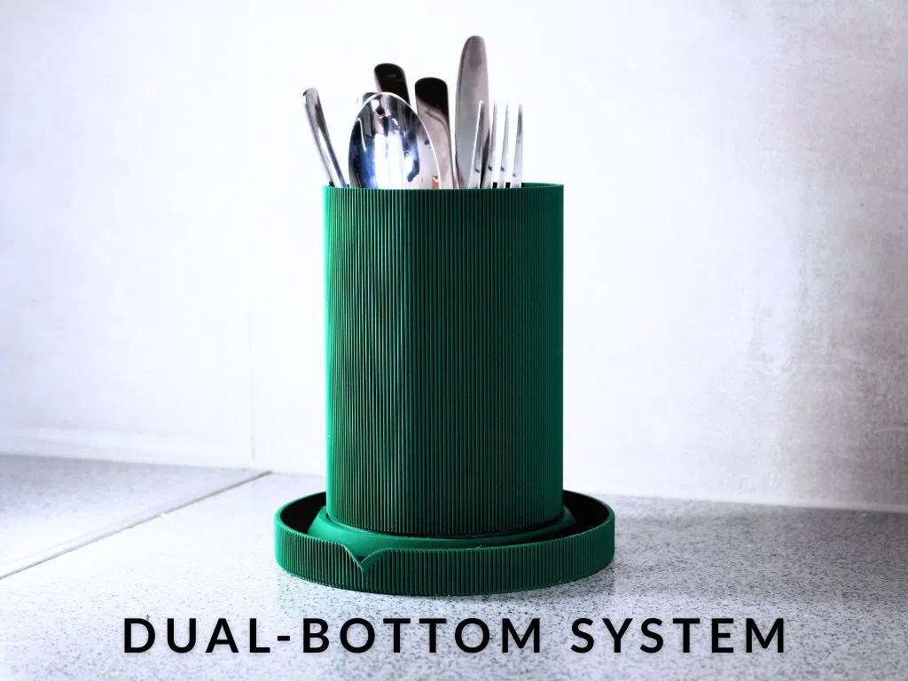 Ống cắm muỗng đũa thông minh với thiết kế đáy đôi tiện lợi. Giúp giữ cho dụng cụ nhà bếp luôn khô ráo, sạch sẽ và vệ sinh nhờ khả năng thoát nước hiệu quả xuống khay chứa bên dưới. Thiết kế hiện đại, nhỏ gọn và cực kỳ dễ dàng vệ sinh.