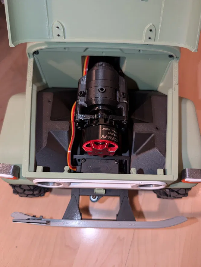 Mình đã thiết kế lại phần giá đỡ motor và mặt trước hộp số gốc của Bamboo Model 12 để có thể gắn vừa motor Hobbywing Quicrun Outer 3530 SL. Thiết kế này giúp bạn dễ dàng lắp đặt và vận hành mượt mà hơn cho chiếc xe crawler của mình.