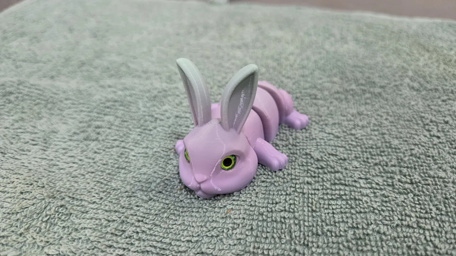 Chú thỏ cử động (articulated) siêu cưng của Biocraftlab nay đã có thêm đôi mắt kính sáng bóng rồi nè! :) Không cần dùng support hay brim gì cả, in cực kỳ dễ luôn. Mình in với layer height 0.16mm và infill gyroid 8%. Chúc các bạn in vui vẻ nhé :) Nếu thấy thích và muốn ủng hộ mình ly cà phê, hoặc tham gia membership để nhận 3 file STL được chuyển đổi mỗi tháng thì ghé đây nha: https://buymeacoffee.com/B3ND. Link mua mắt kính cho thỏ: Aliexpress https://s.click.aliexpress.com/e/_c3fHmdwH Amazon https://amzn.to/4sKbrO0 https://amzn.to/3YATeVl Nhựa sử dụng: Gradient macaron https://s.click.aliexpress.com/e/_c2RY1Dkf Máy in của mình: Elegoo Centauri Carbon https://amzn.to/4qfU9Xj