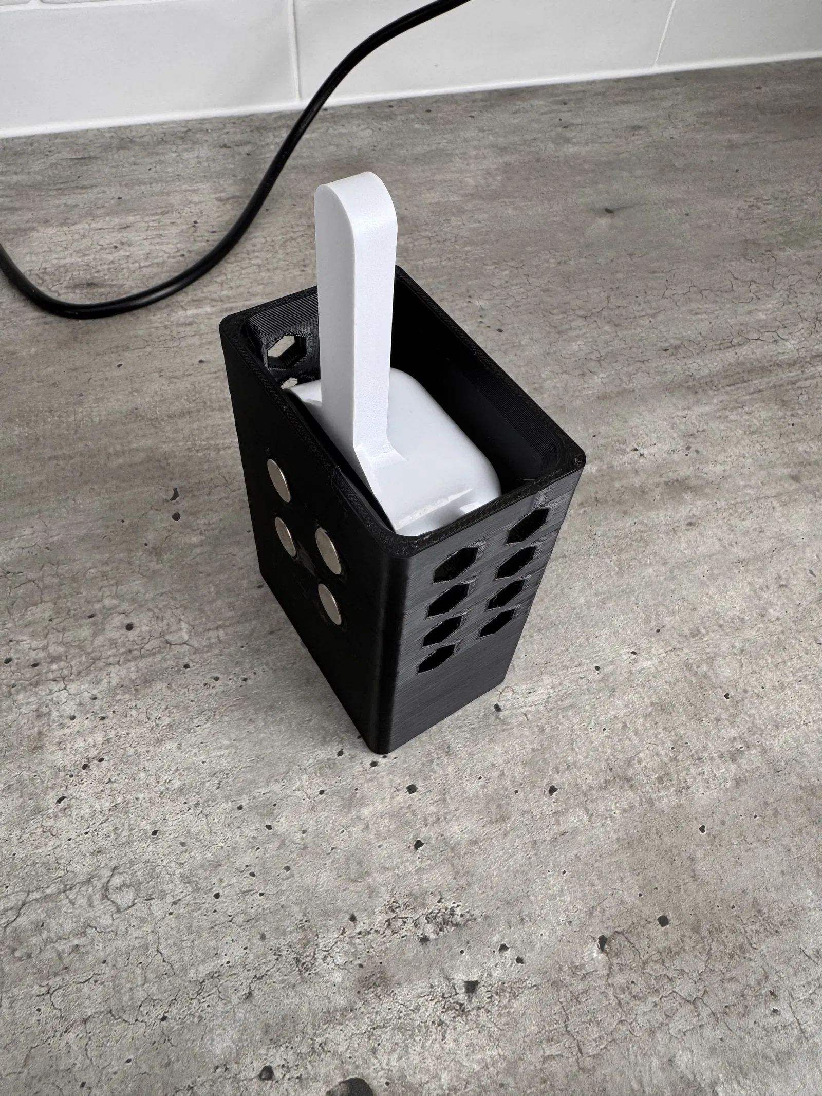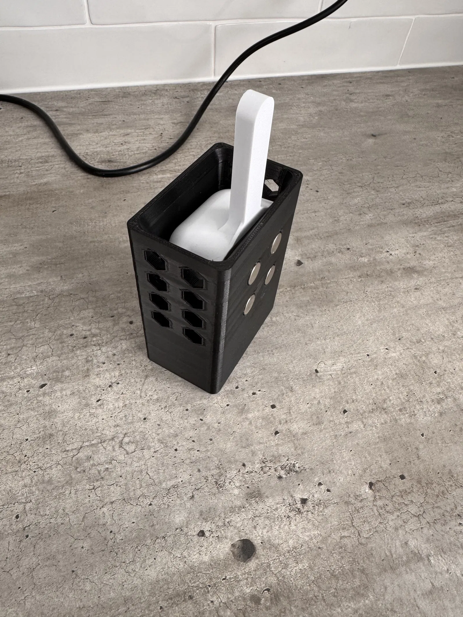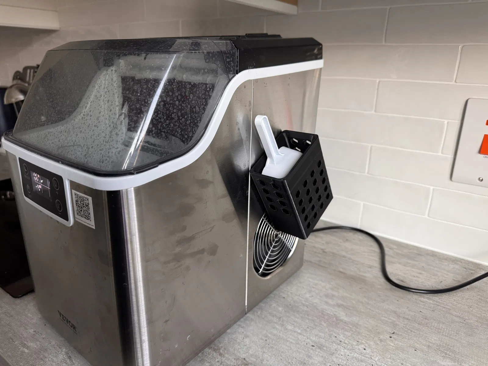 Giải quyết vấn đề muỗng múc đá không có chỗ để cố định trên máy làm đá Vevor. Thiết kế thông minh với nam châm, có lỗ thoát nước và thông hơi, in dễ dàng không cần support. Lưu ý chọn nhựa an toàn thực phẩm để đảm bảo sức khỏe khi sử dụng.