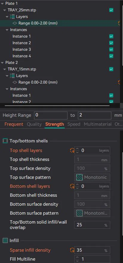 - Hướng dẫn in 3D: Với độ dày thành khay khoảng 0-2mm, bạn nên thiết lập 0 lớp đáy và 0 lớp mặt (top & bottom layers) để tạo ra cấu trúc dạng lưới giúp không khí lưu thông tối đa.
