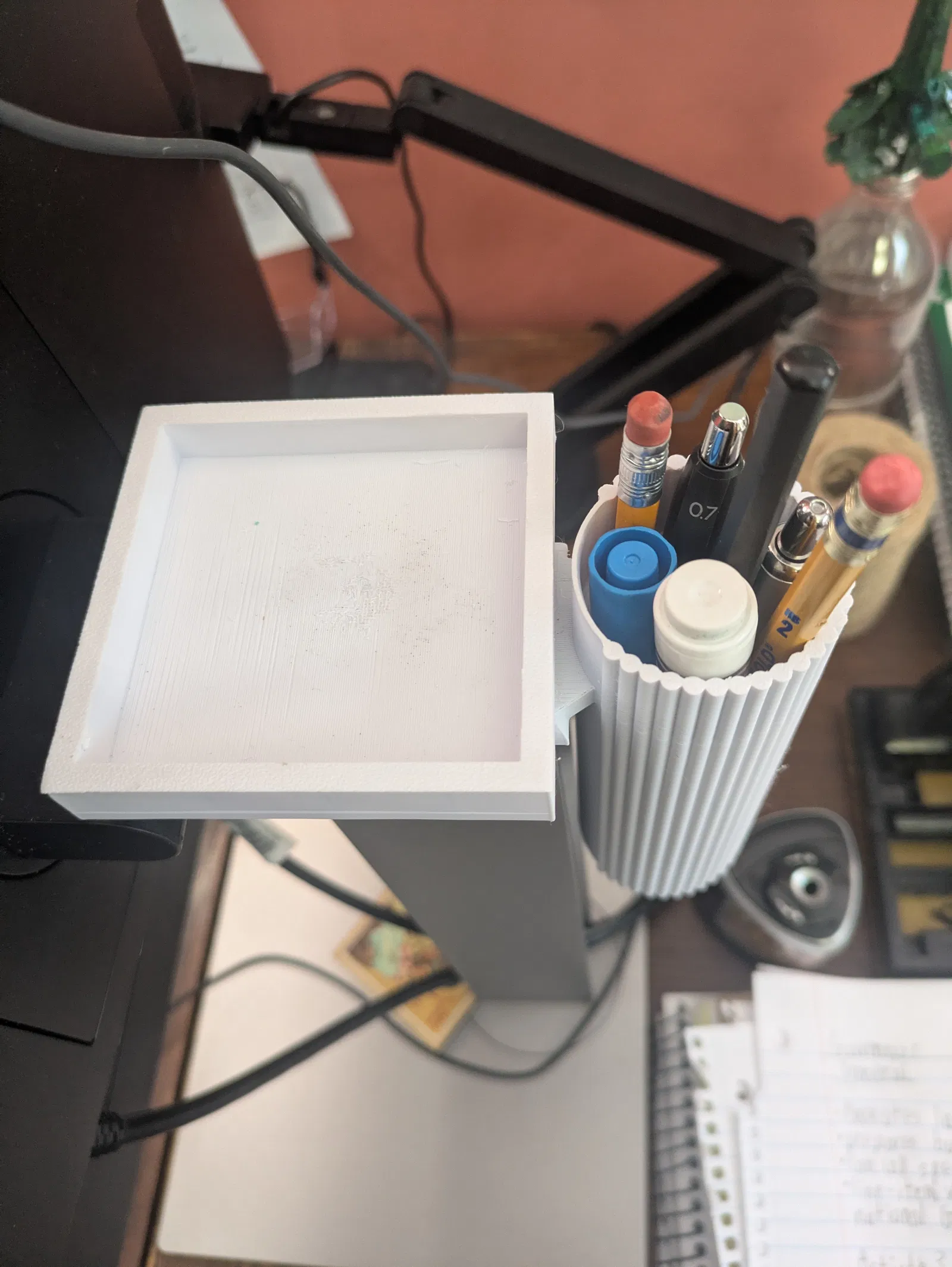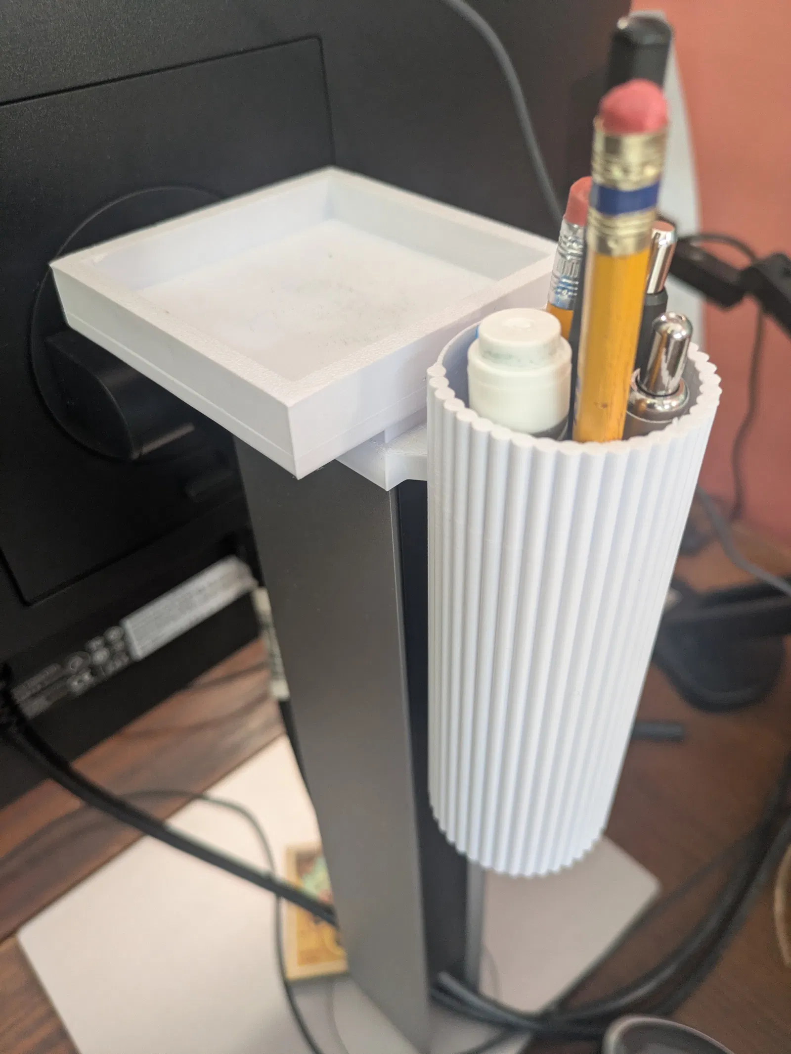 Ống cắm bút gắn cạnh bàn máy tính