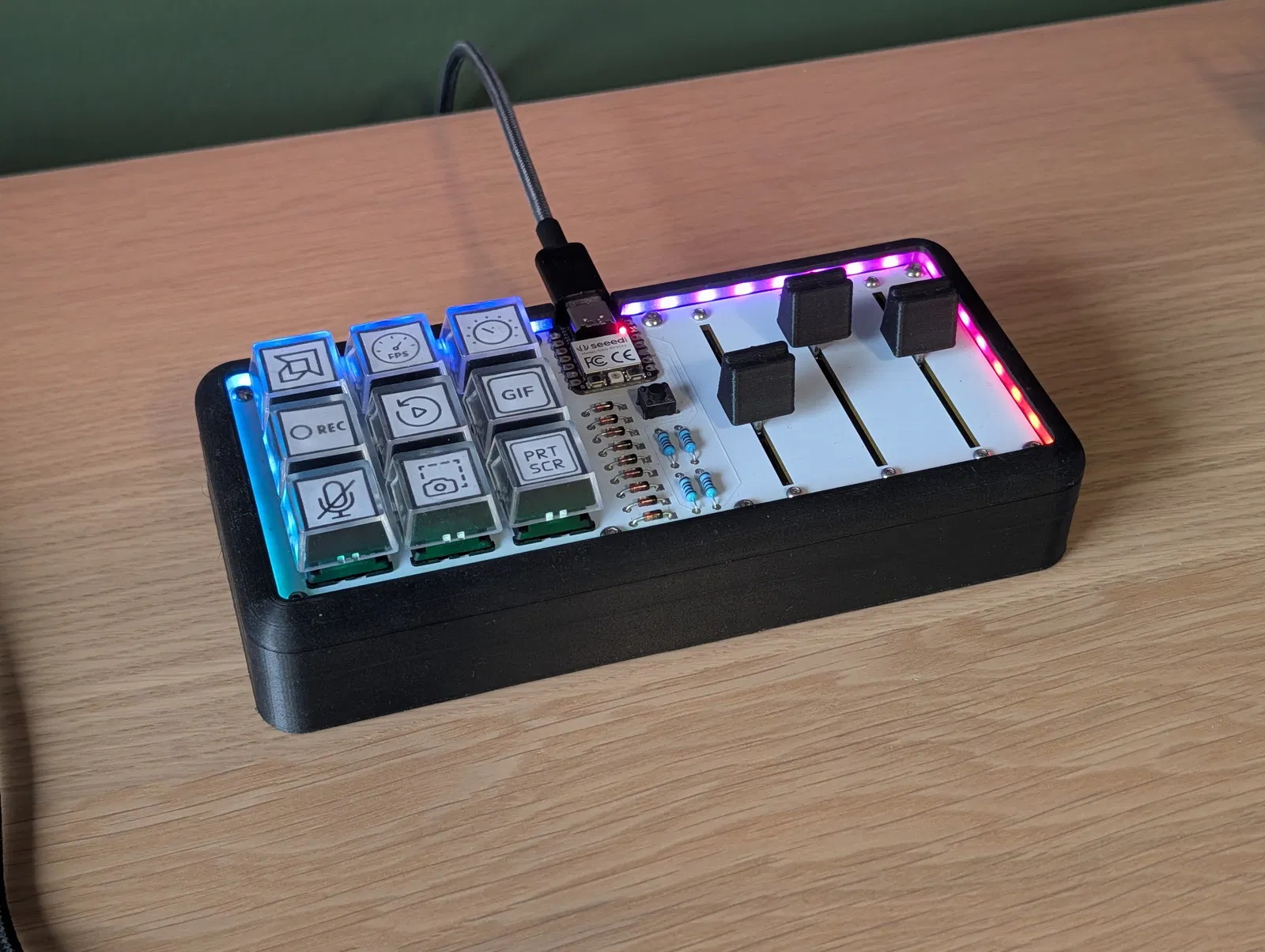 Tự tay làm bàn phím macro và bảng điều khiển âm lượng Deej với đèn LED RGB, sử dụng Seeed Studio XIAO RP2040 và CircuitPython. Thiết kế đẹp mắt, tùy biến linh hoạt cho góc làm việc của bạn.