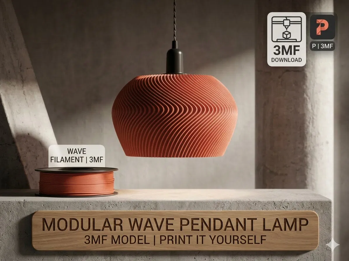 Mang đến vẻ đẹp hiện đại và tinh tế cho không gian với mẫu đèn thả Aura Wave có thiết kế vân sóng độc đáo. File in 3MF được tối ưu hóa cho máy in FDM, dễ dàng in ấn và tương thích tốt với các loại đuôi đèn tiêu chuẩn hiện nay.
