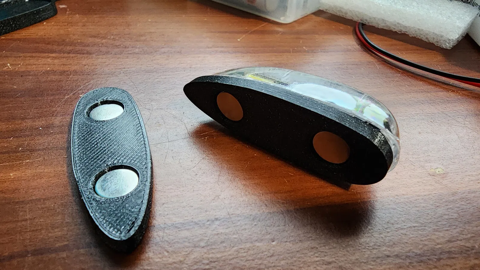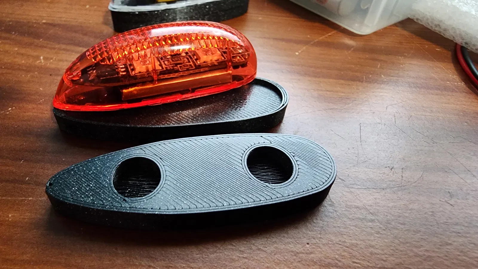 Vào mỗi buổi chiều tối, gió thường lặng đi, tạo điều kiện cực kỳ lý tưởng để bay máy bay mô hình (RC), và việc gắn thêm đèn sẽ càng làm trải nghiệm bay thú vị hơn. Mình có mua một bộ đèn LED chớp "EasyLights" dùng pin, nhưng mình không muốn phải mua mỗi máy bay một bộ. Trước đây mình dùng miếng dán velcro, nhưng trời lạnh thì keo lại hay bị bong. Thế nên mình đã nảy ra ý tưởng thiết kế một bộ chuyển đổi in 3D gắn nam châm để có thể tháo lắp đèn giữa các máy bay thật nhanh chóng. Bộ adapter này rất nhỏ gọn (chỉ tốn khoảng 13 gram nhựa) nên hầu như không ảnh hưởng đến khả năng bay của máy bay.