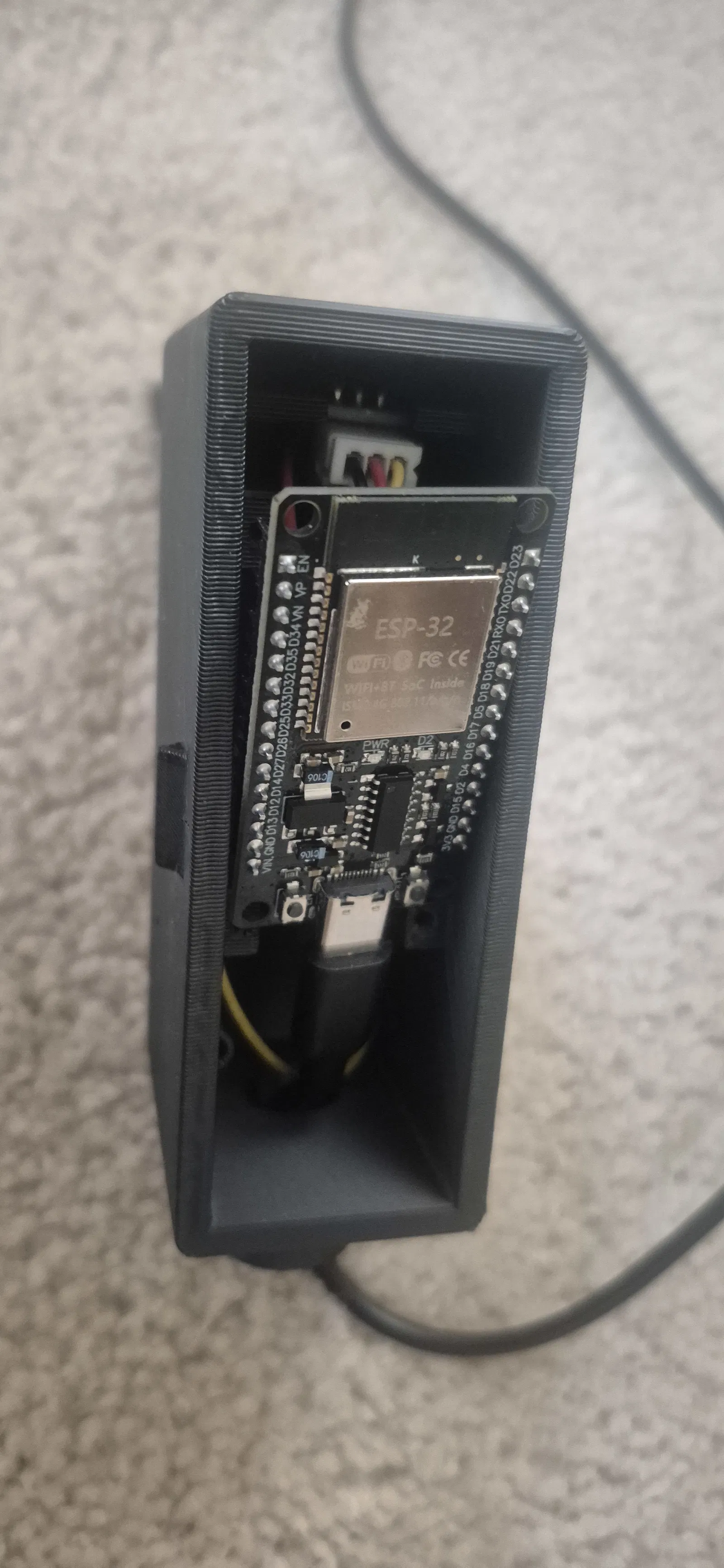4. Quản lý dây: Luồn dây USB-C qua phần ngạnh. Mẹo nhỏ: Hãy dùng dây rút tại móc treo bên trong để làm "điểm giảm tải lực" (strain relief). Hãy để một chút dây chùng bên trong, phòng trường hợp có ai vấp phải dây thì cổng USB của ESP32 không bị giật đứt ra.