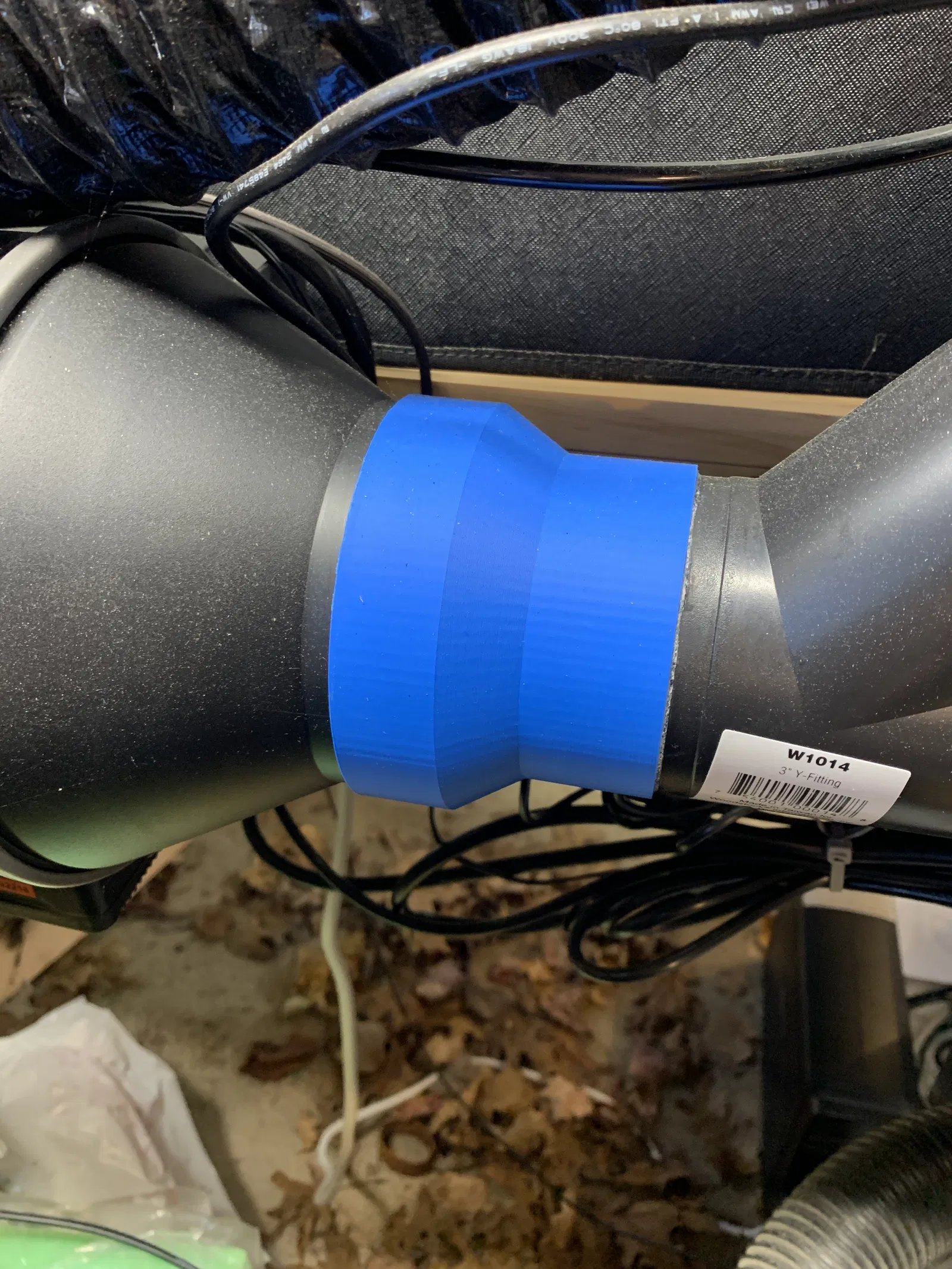 Cái này được thiết kế để nối ống xả 3 inch của máy cắt laser vào hệ thống thông gió 4 inch trong xưởng của tụi mình. Nó được làm để lắp vừa khít bên ngoài đường ống 4 inch và ống 3 inch. Tụi mình đã dùng nó để kết nối với quạt hút âm trần inline ACInfinity 4 inch.
