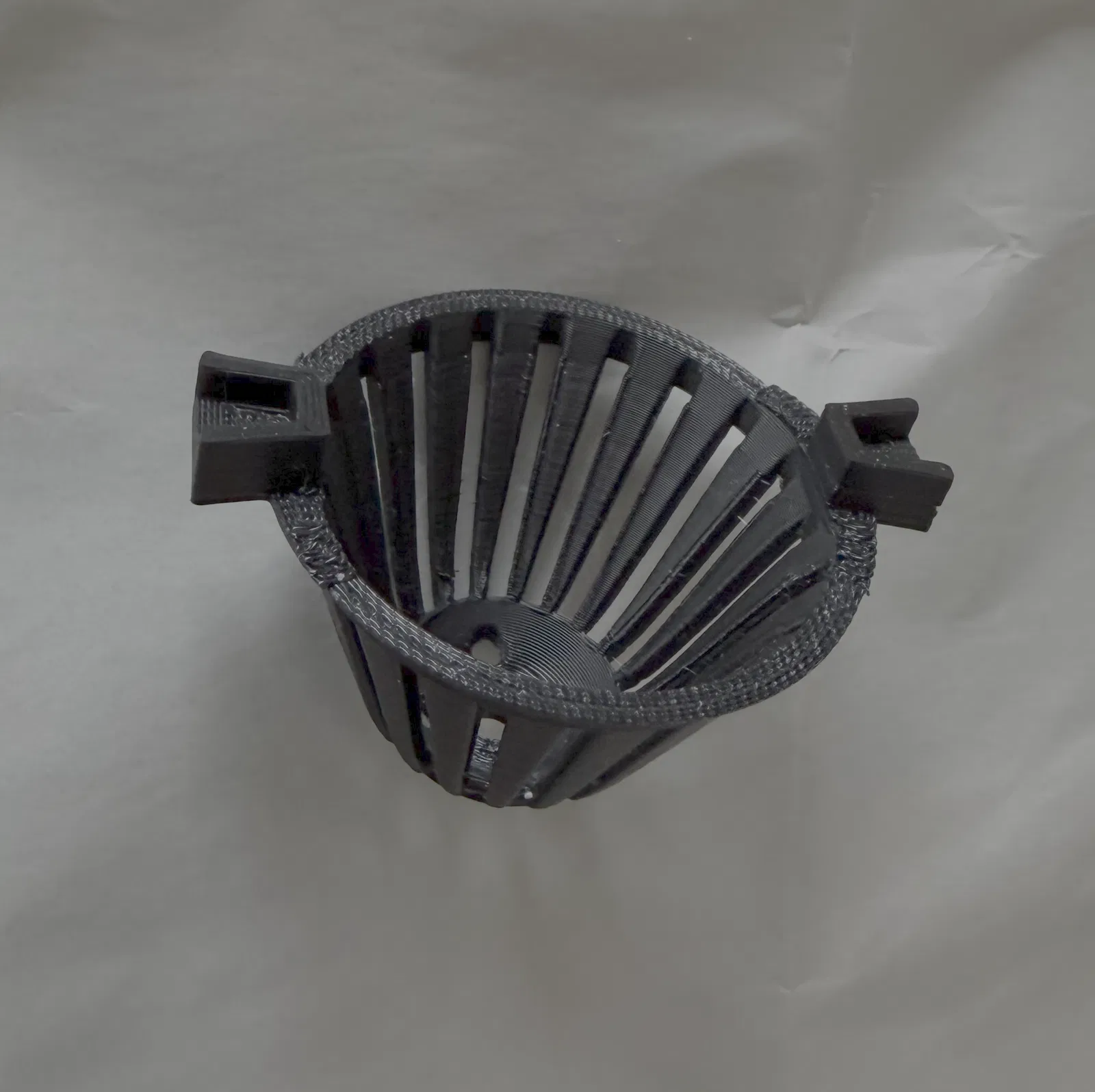 Cái rổ lọc của phễu thoát sàn ACO nhà mình có phần giỏ đặt dưới vỉ chặn để giữ lại tóc, xơ vải và rác, giúp ống thoát nước luôn sạch sẽ. Mỗi lần lấy giỏ ra vệ sinh, mình cứ lo là lỡ nó bị gãy thì tính sao? Rồi nếu mình không muốn mất công cọ rửa mà muốn thay cái mới luôn thì sao nhỉ? Mình đã tìm trên Amazon và khắp mạng internet mà không thấy chỗ nào bán đồ thay thế chuẩn cả. Thế là mình tự thiết kế luôn cái giỏ này, vừa khít với lỗ thoát sàn 2 inch / 50 mm của nhà mình. Mình in bằng nhựa PLA vì: a) nó đủ cứng cáp, b) mình sẵn có PLA, c) in rất dễ, và d) nếu có phân hủy thì cũng phải mất nhiều năm. Vì giỏ này cần tháo ra định kỳ để đổ rác, nên mình sẽ sớm phát hiện ra nếu nhựa có dấu hiệu xuống cấp trước khi nó kịp gãy. Nếu bạn lo lắng về việc PLA bị ngâm nước, bạn có thể dễ dàng in bằng PETG hoặc bất kỳ loại nhựa chống nước nào khác. LƯU Ý: Bản in này BẮT BUỘC phải dùng Support. Phần "tay cầm" ở hai bên nhô ra phía dưới mô hình, còn đầu kia thì tròn. Mình đã dùng PETG làm vật liệu tạo giao diện support nên tách ra rất dễ dàng và sạch sẽ. Mình có đính kèm cả file Fusion 360 trong trường hợp bạn muốn chỉnh sửa. Mình mới tập tành Fusion thôi nên thiết kế có thể chưa tối ưu lắm, thông cảm nhé! _(ツ)_/