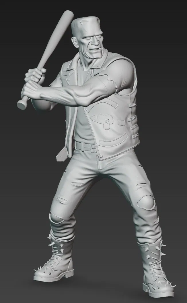 Chào các bạn yêu thích in 3D, hôm nay mình xin giới thiệu đến mọi người một mẫu nhân vật cực kỳ ấn tượng và cá tính, đó chính là Frankenrocker 2. Đây là một phiên bản sáng tạo độc đáo khi kết hợp hình tượng quái vật Frankenstein kinh điển với phong cách bụi bặm, hầm hố của một thành viên trong băng nhóm mô tô đường phố. Bạn sẽ thấy nhân vật này khoác lên mình chiếc áo khoác da phong cách biker với các chi tiết rách nát, đôi ủng có đinh tán sắc nhọn và đang lăm le cây gậy bóng chày trên tay như sẵn sàng cho một cuộc đối đầu đầy kịch tính.
