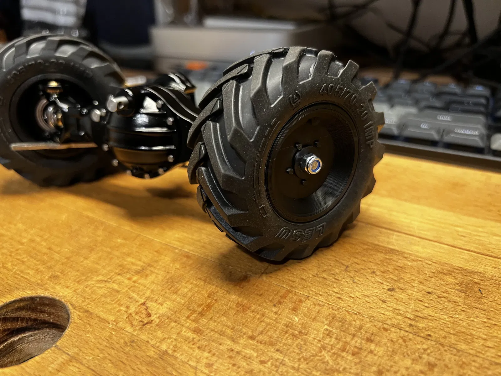 Bộ bánh xe này được thiết kế dành cho dòng trục LESU Q-9000 (trong hình là trục giữa-trước 9005) và bánh xe dumper/loader LESU 405/70-20 tương tự như trên các mẫu MCL8, AT1050 và 6MDX. Vì các trục này có phần khớp nối (knuckle) khá lớn nên bánh xe được thiết kế để tối ưu hóa khoảng hở.