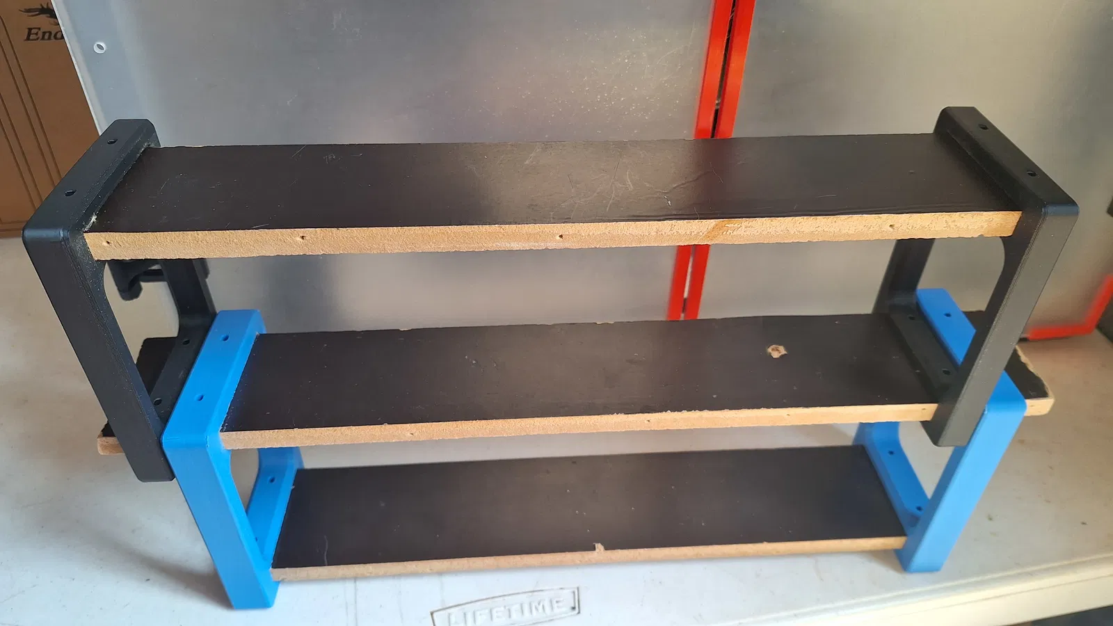 Điểm đặc biệt của thiết kế này là sự kết hợp giữa các linh kiện in 3D nhựa cứng cáp và các tấm ván phẳng tận dụng từ vật liệu sẵn có. Phần khung in 3D đóng vai trò như những cột trụ vững chãi, giữ cho các tấm ván được cố định chắc chắn mà không cần quá nhiều ốc vít phức tạp. Bạn có thể dễ dàng in thêm các chi tiết để mở rộng thêm tầng nếu nhu cầu sử dụng tăng lên trong tương lai, đây chính là sự tiện lợi của hệ thống module.