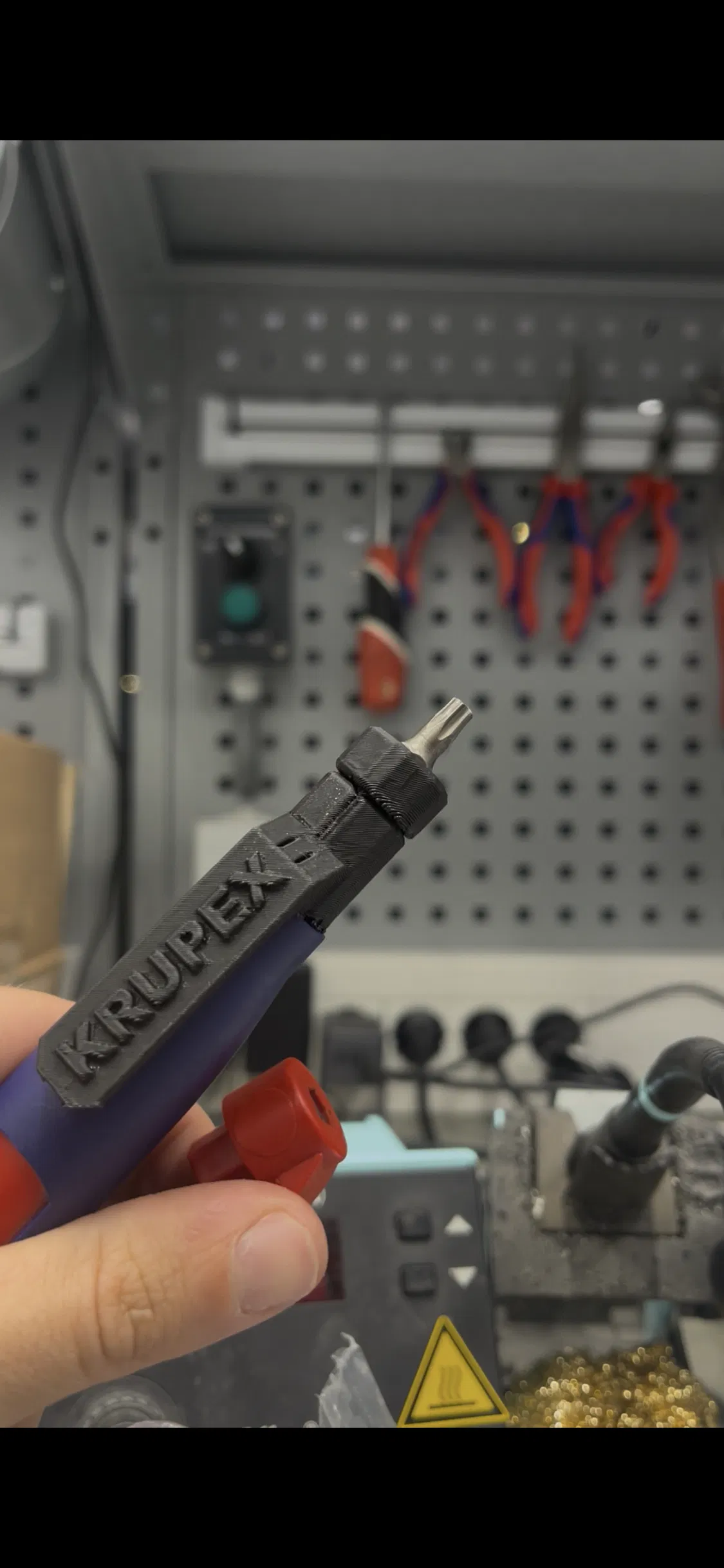 Mình muốn mang gọn một chìa khóa thay vì hai cái mà vẫn giữ được tính năng của đầu giữ bit, nên mình đã thiết kế ra mẫu này. Thiết kế tối ưu hóa cho in 3D với độ bền cao và dễ sử dụng cho dòng khóa tủ điện Knipex.