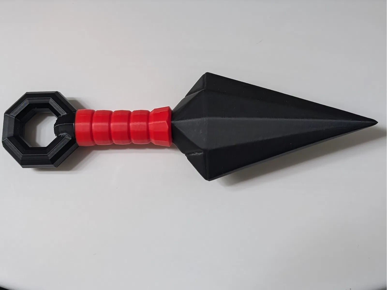 Phần lưỡi kiếm được tạo hình đa giác cách điệu vẫn giữ nguyên dáng vẻ kunai cổ điển, nhưng với hình khối dày dặn giúp việc in ấn ổn định hơn và tránh được các cạnh mỏng manh, dễ gãy. Mô hình hoàn thiện cầm rất chắc tay, rất hợp để làm đồ trang trí bàn làm việc, phụ kiện cosplay hoặc vật phẩm sưu tầm cho các fan hâm mộ ninja và anime.
