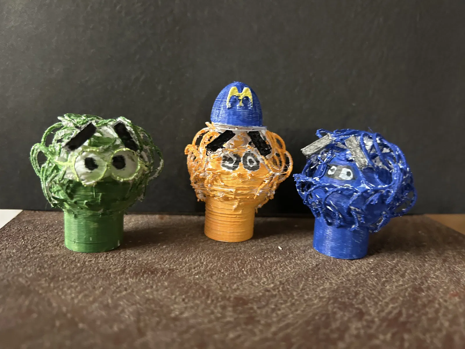 Bạn đang tìm kiếm những món đồ chơi nhỏ xinh, mang phong cách hoài cổ để trang trí bàn làm việc hoặc làm quà tặng cho bé? Bộ ba nhân vật Fry Guys này được thiết kế lấy cảm hứng từ những chú búp bê Fisher Price Little People kinh điển, mang đến vẻ ngoài cực kỳ thú vị và lạ mắt. Với tạo hình ba kiểu dáng khác nhau, mỗi nhân vật sở hữu những đặc điểm riêng biệt đầy cá tính, hứa hẹn sẽ là dự án in 3D tuyệt vời cho bộ sưu tập của bạn.