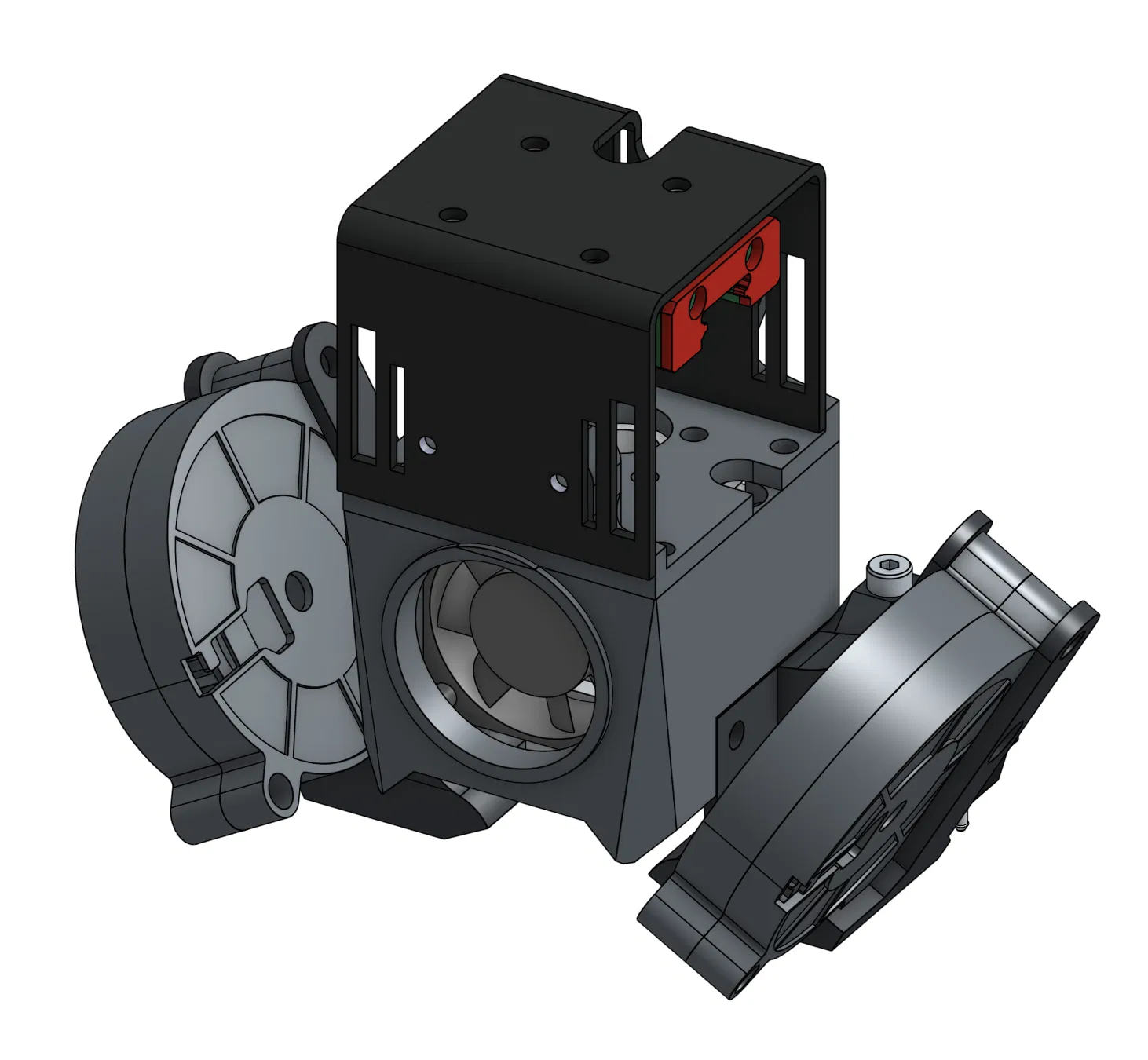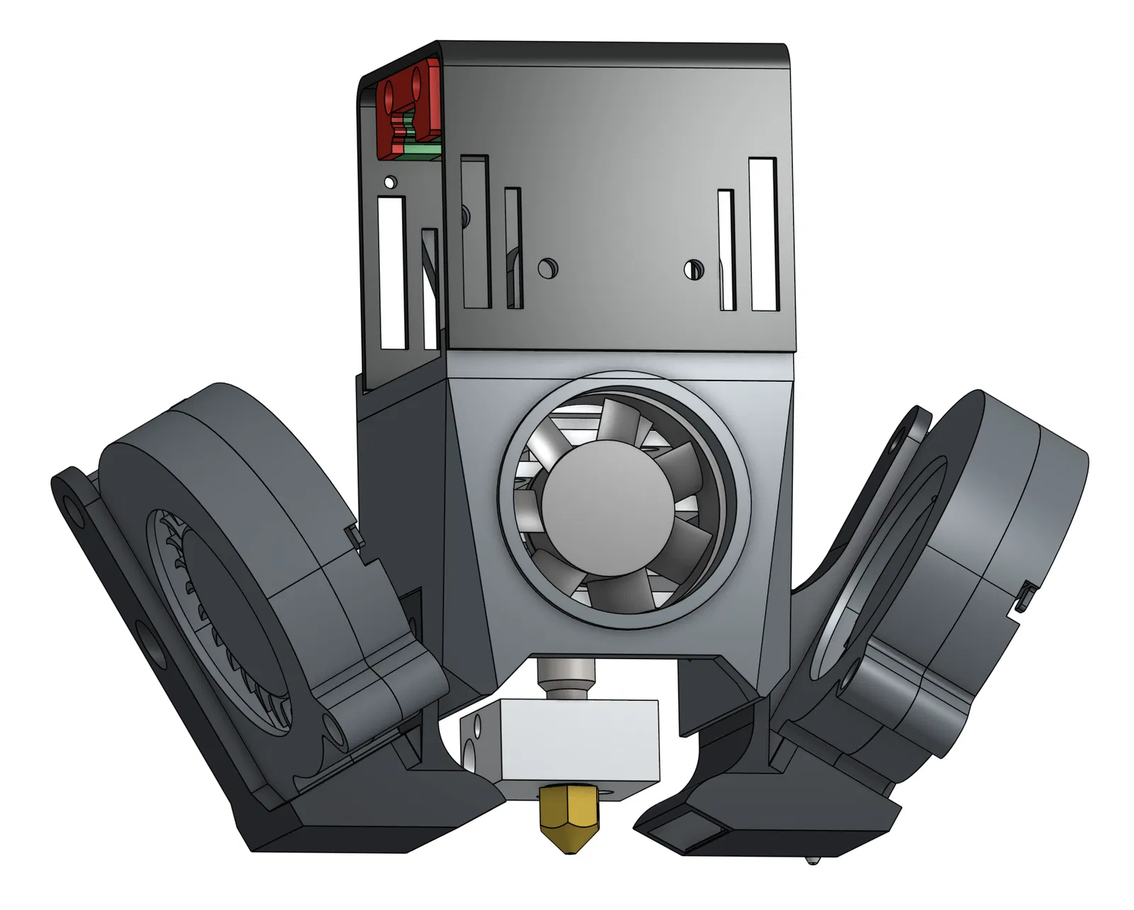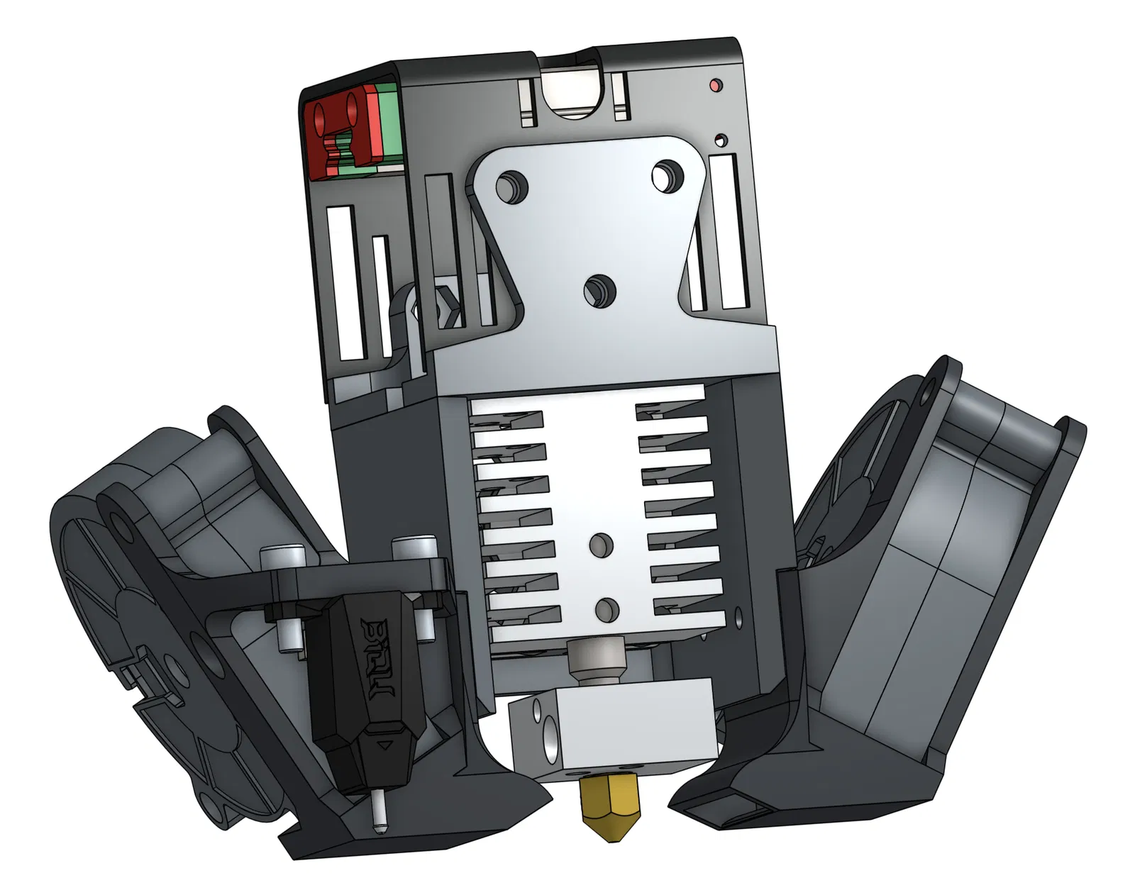 Thiết kế ống dẫn gió kép giúp làm mát cực kỳ hiệu quả, là một bản nâng cấp đáng kể so với hệ thống nguyên bản. Ngoài ra, bộ carriage này còn cho phép gắn thêm mạch ADXL345 ở mặt trước để phục vụ việc đo cộng hưởng.
