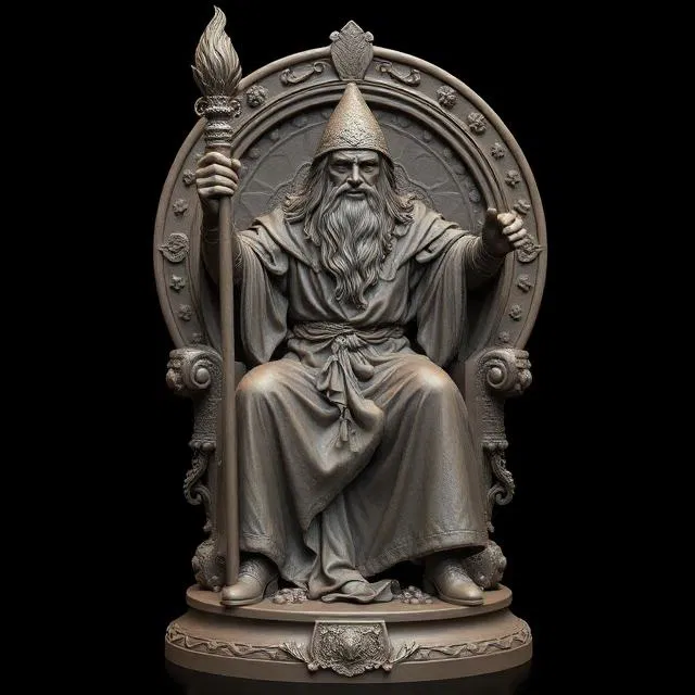 Mô hình 3D Phù Thủy Quyền Năng Trên Ngai Vàng (Wizard Statue)