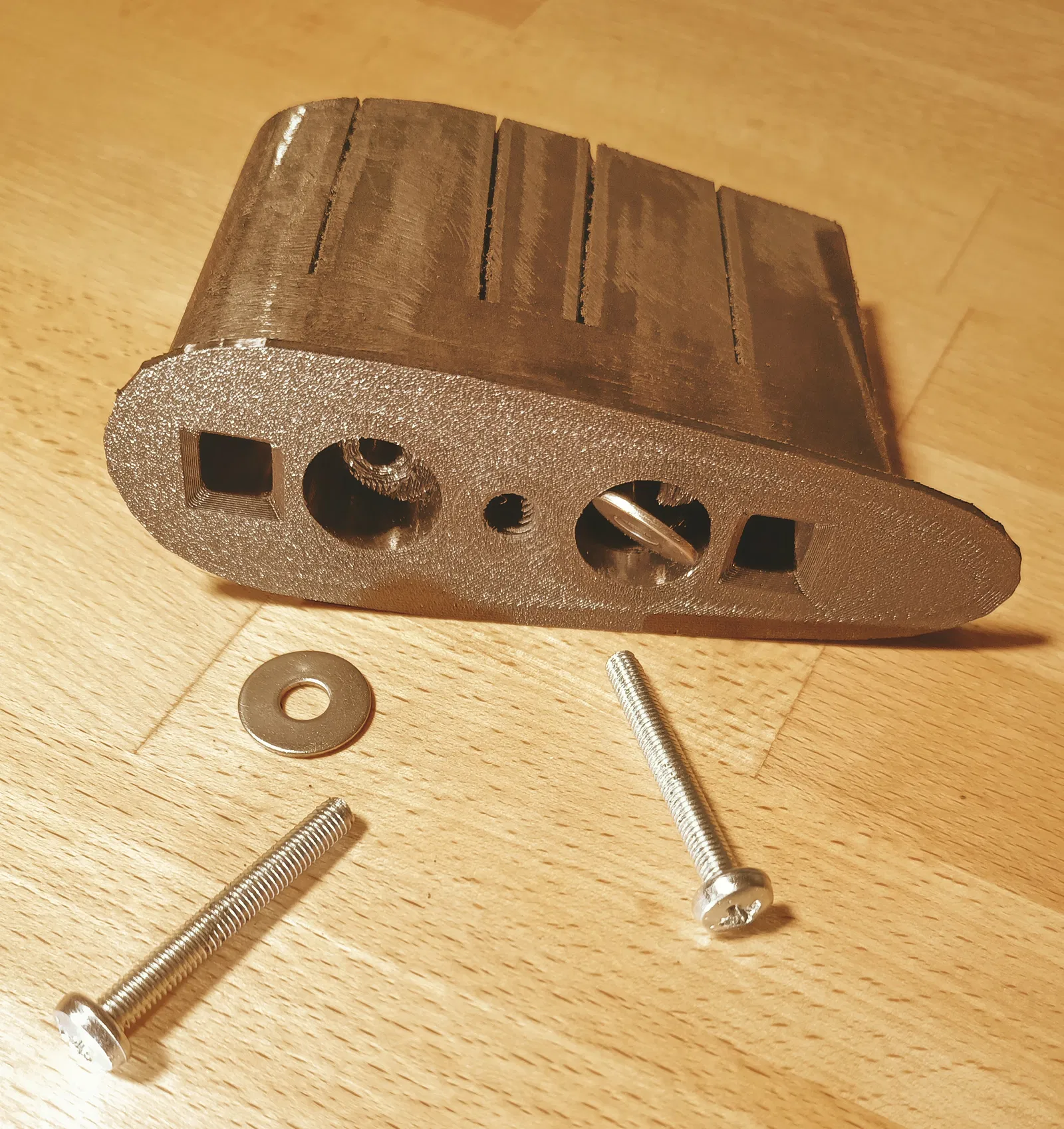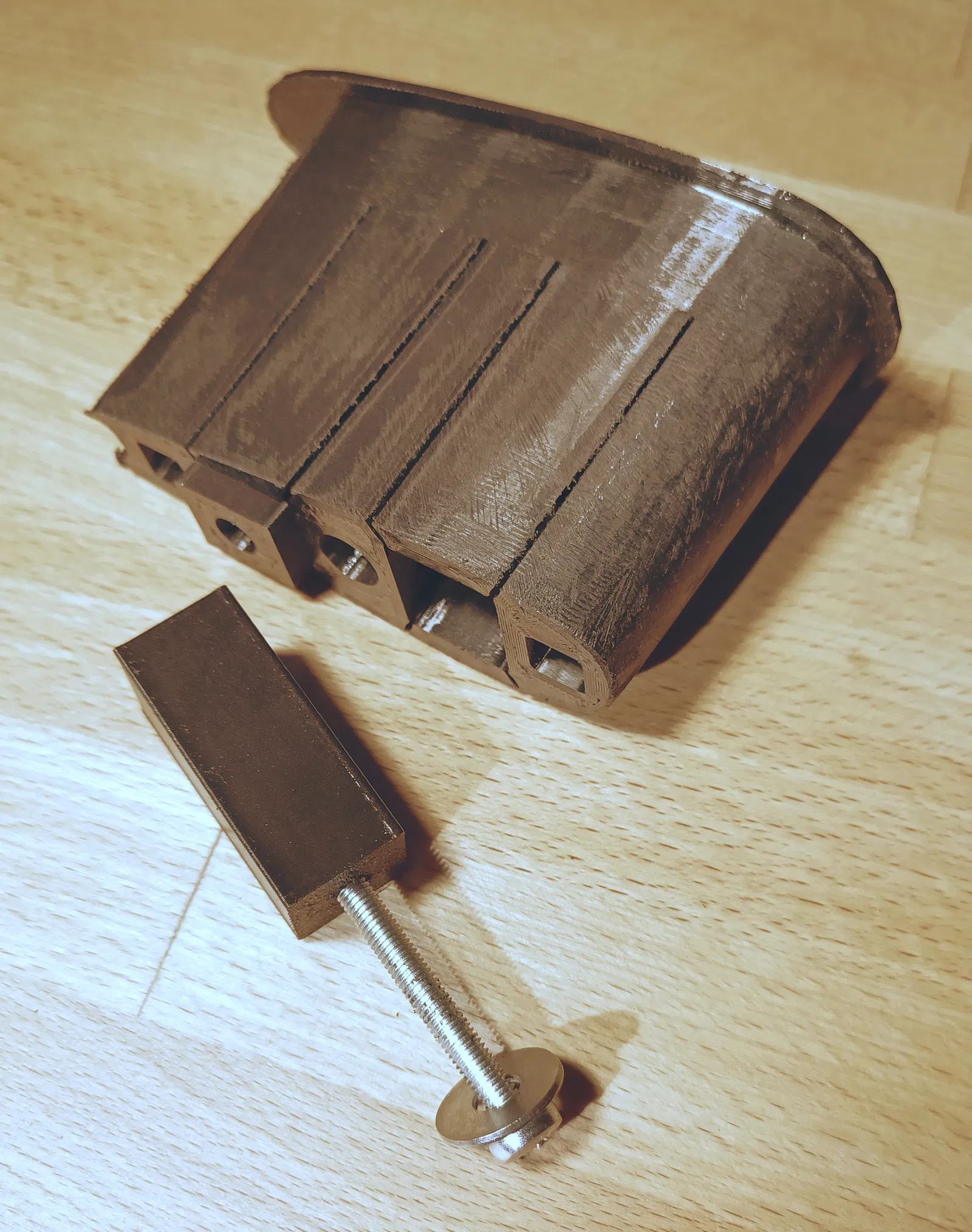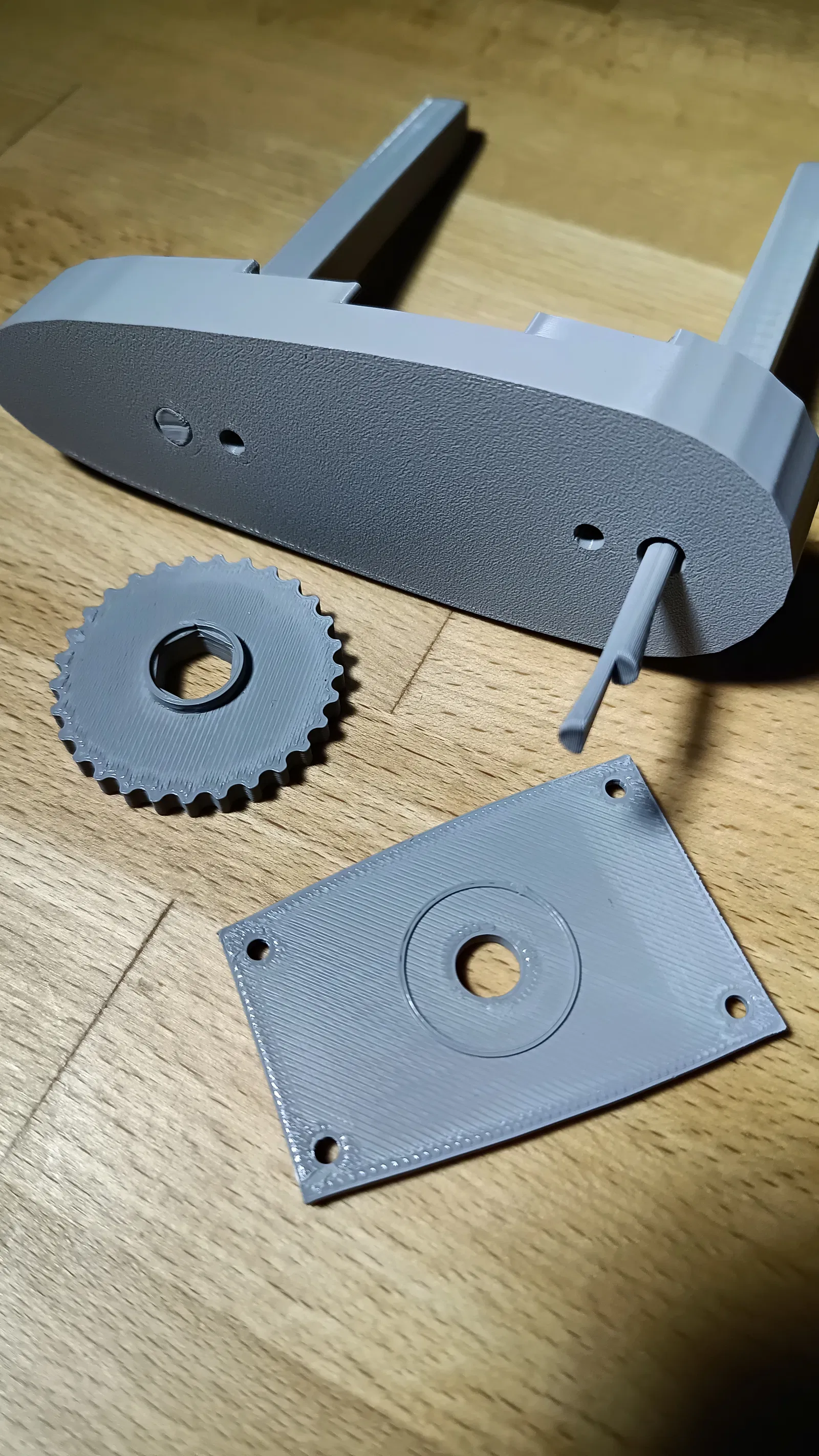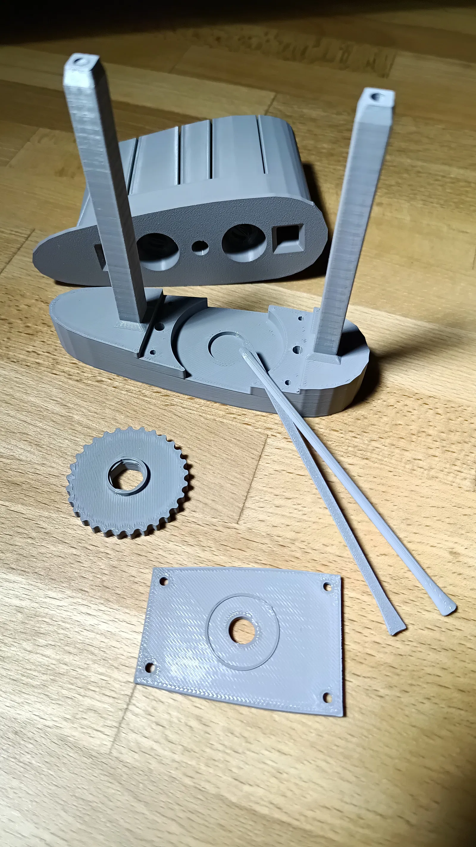 • 4× "pultrn" – các chốt bản lề, được in theo hướng khác để giảm nguy cơ gãy. Khuyến khích thay thế bằng thanh kim loại 4mm (ví dụ: thanh ren) để tăng độ bền.