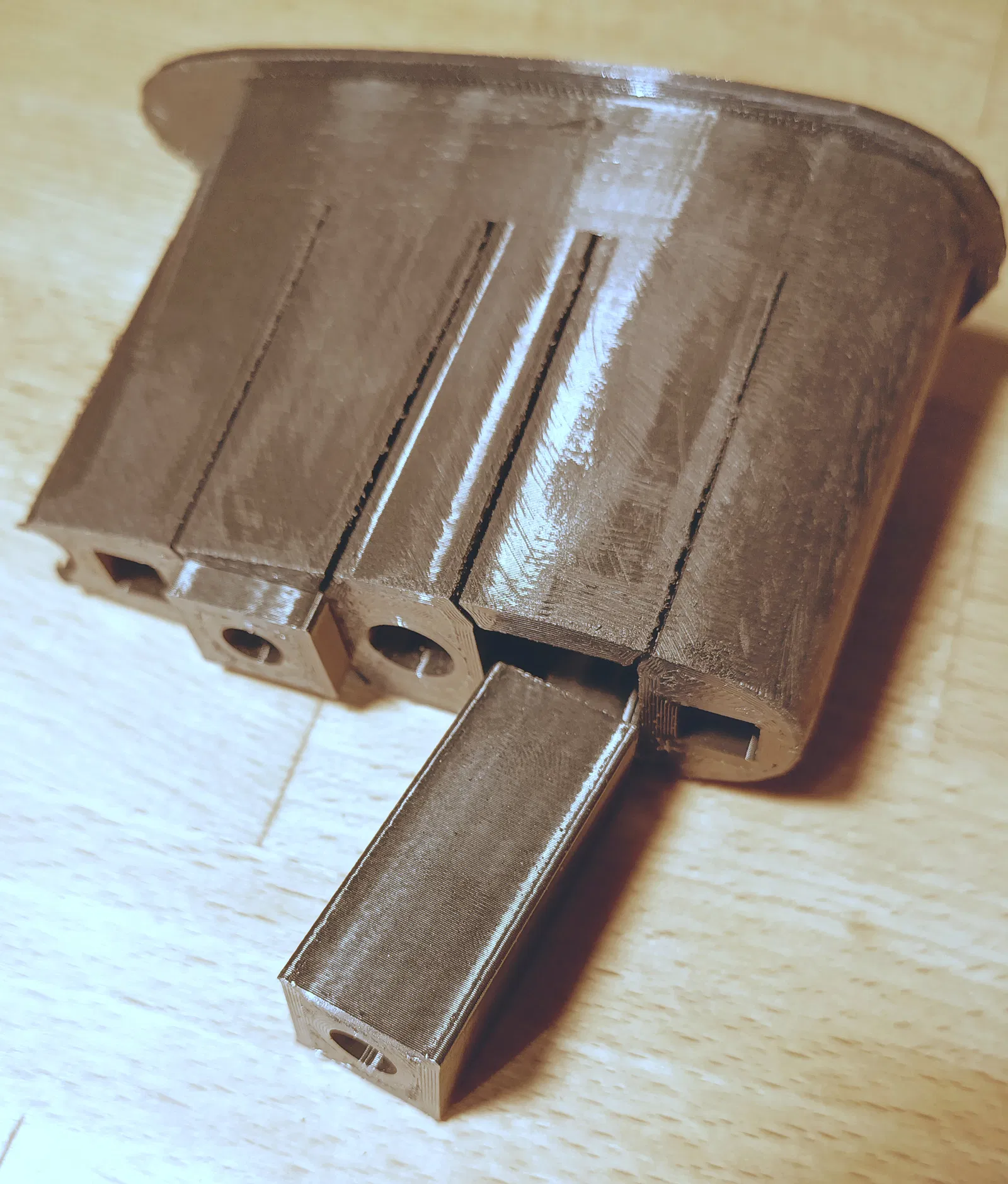 • "patka2" – trượt vào phần "patka". Các chốt có thể cần được chà nhám trơn tru để dễ di chuyển, đặc biệt là khi in bằng PETG.